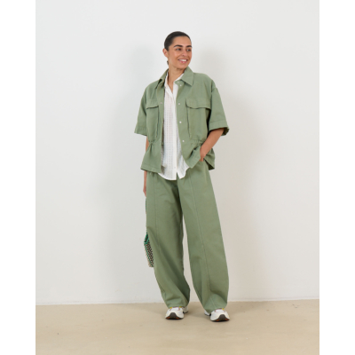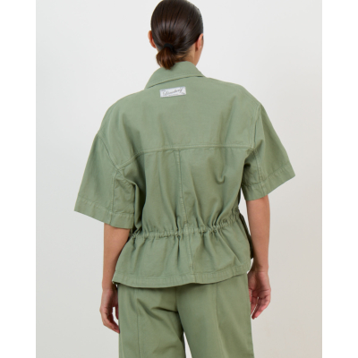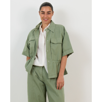 Style this utility-inspired piece with wide-leg trousers for a coordinated look or pair it with tailored jeans for contemporary contrast. The versatile green tone complements neutral bottoms and works perfectly layered over fitted tops.