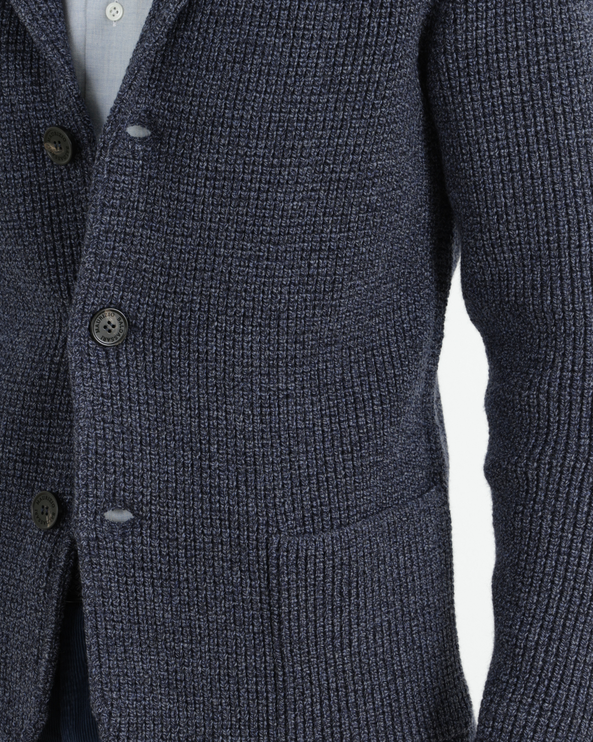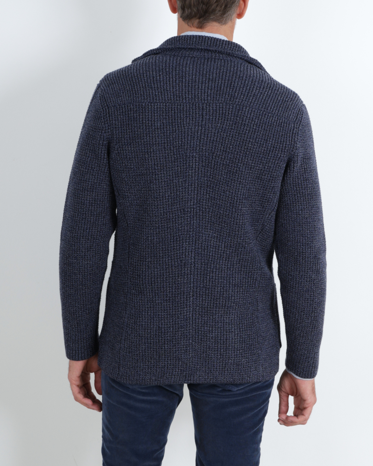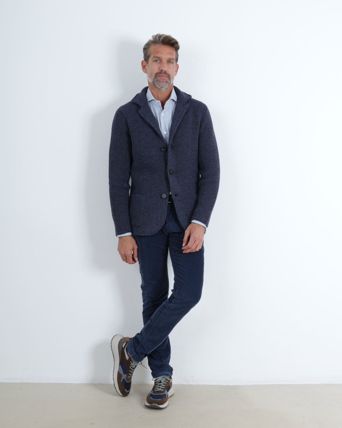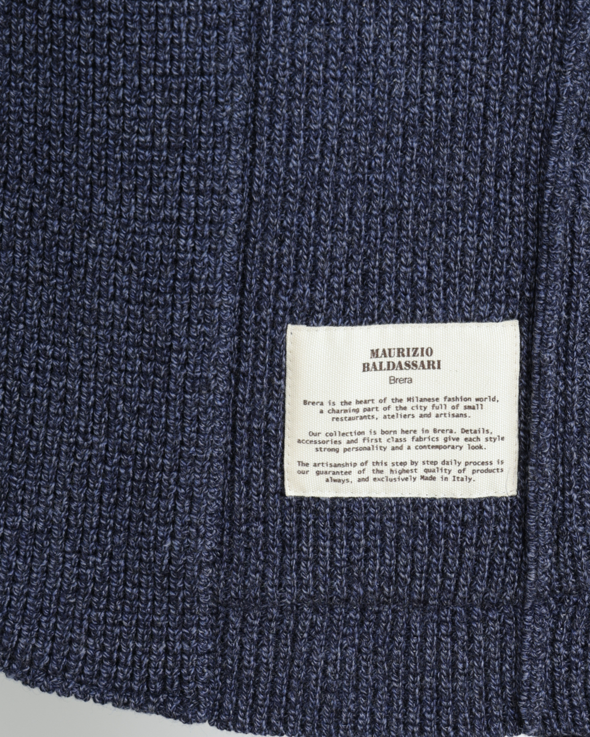 De iconische gebreide Brenta swacket van het merk Maurizio Baldassari is een model dat doet denken aan het klassieke colbert, maar heeft een meer informele en veelzijdige uitstraling, ontworpen voor elke gelegenheid. Het kenmerkende gerstekorrelpatroon geeft het kledingstuk een compacte maar toch zachte en comfortabele uitstraling. Dit ontwerp heeft twee voorzakken en een sluiting met drie knopen aan de voorkant.