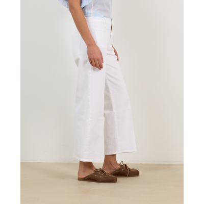 These white cropped jeans by Mother showcase the brand's signature attention to detail and modern craftsmanship. Crafted from 98% cotton with 2% elastane, the fabric offers comfortable stretch while maintaining its shape. The regular fit ensures a flattering silhouette that moves with you throughout the day. Distinctive patch pockets on both front and back add functional style, while the cropped length creates a contemporary ankle-skimming finish. The clean white tone makes these women's clothing essentials versatile for any season.