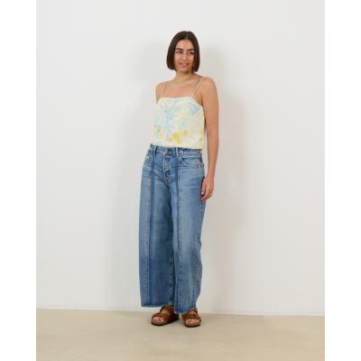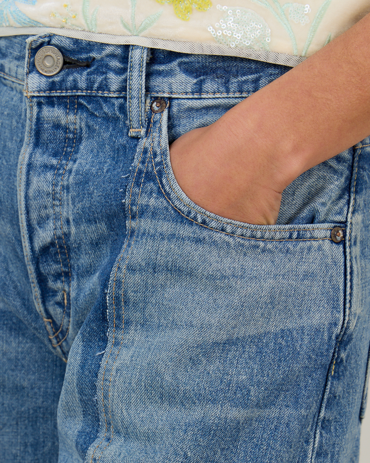 Style these versatile blue jeans with fitted tops to balance the wide silhouette. Pair with cropped sweaters or blouses for polished everyday looks, or combine with graphic tees for weekend styling. The raw edge hem adds modern edge when worn with heeled boots or sleek sneakers.
