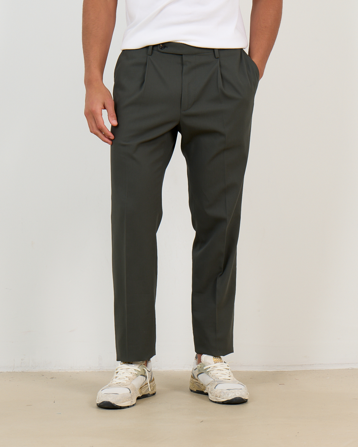Style these versatile trousers with a crisp white shirt and blazer for formal occasions, or pair with a knitted polo and casual jacket for relaxed business settings. The rich green tone complements neutral tones beautifully and works particularly well with cream, navy, or tan colored tops and outerwear pieces.