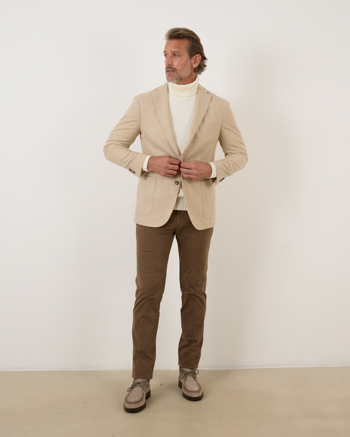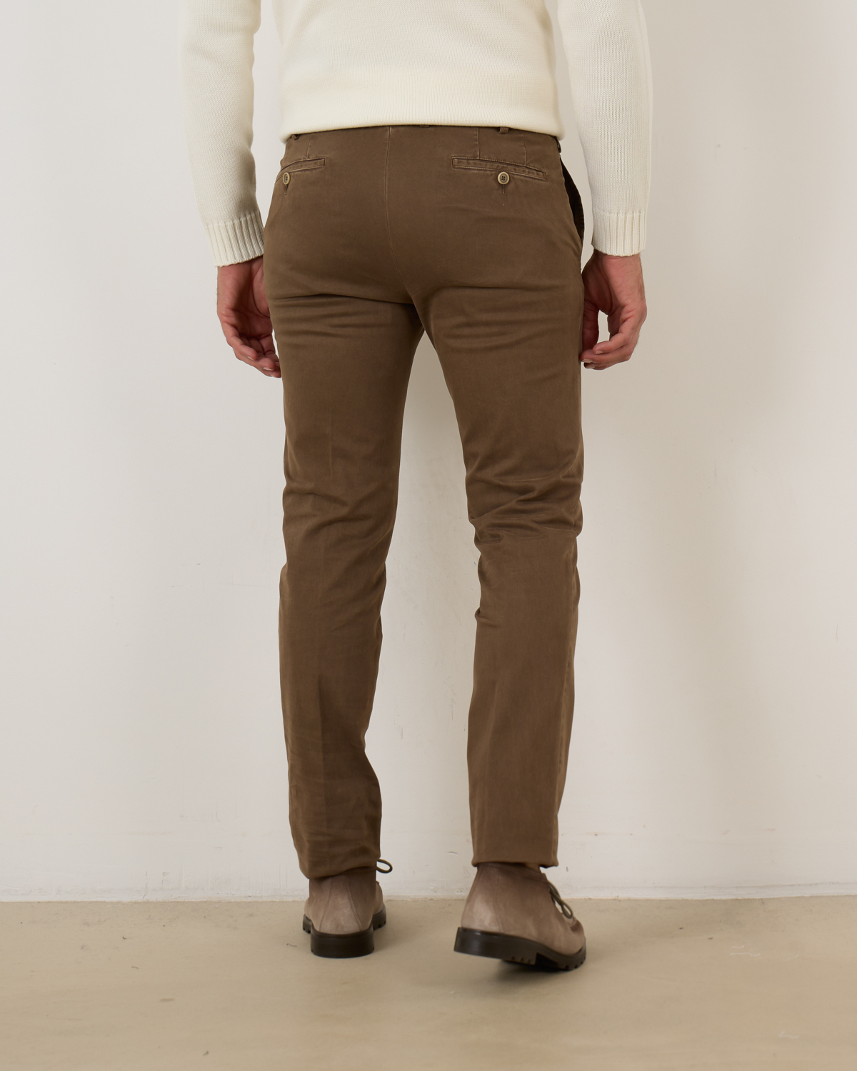 Pair these versatile men's trousers with a crisp white shirt for smart casual occasions, or combine with a knitted sweater for relaxed weekend styling. The neutral brown tone works beautifully with cream blazers, navy jumpers, or classic white button-downs. Complete the look with leather shoes or casual loafers for refined men's fashion that transitions from office to leisure.