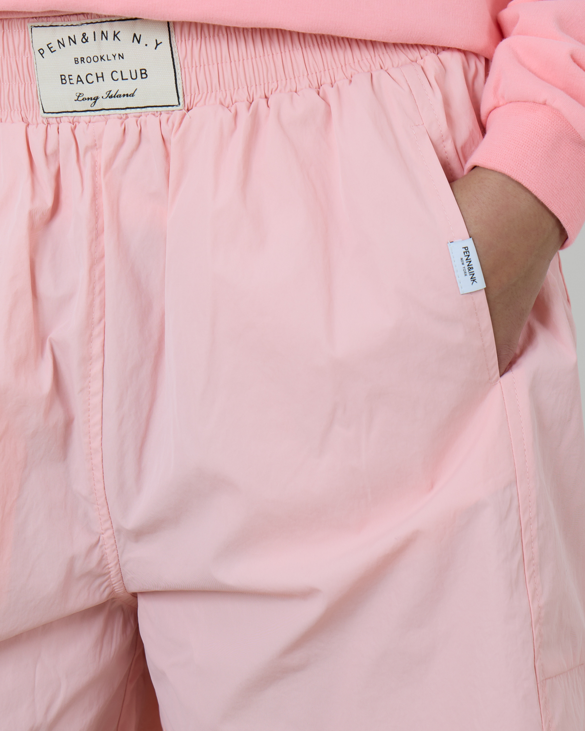 De Penn&Ink shorts in de kleur Meringue hebben een sportieve en eigentijdse uitstraling. Het ontwerp is geïnspireerd op de klassieke boksershort, met een brede elastische tailleband voor een comfortabele en stoere look. De relaxed fit en veelzijdige stijl maken deze short perfect voor moeiteloos zomerse outfits.
