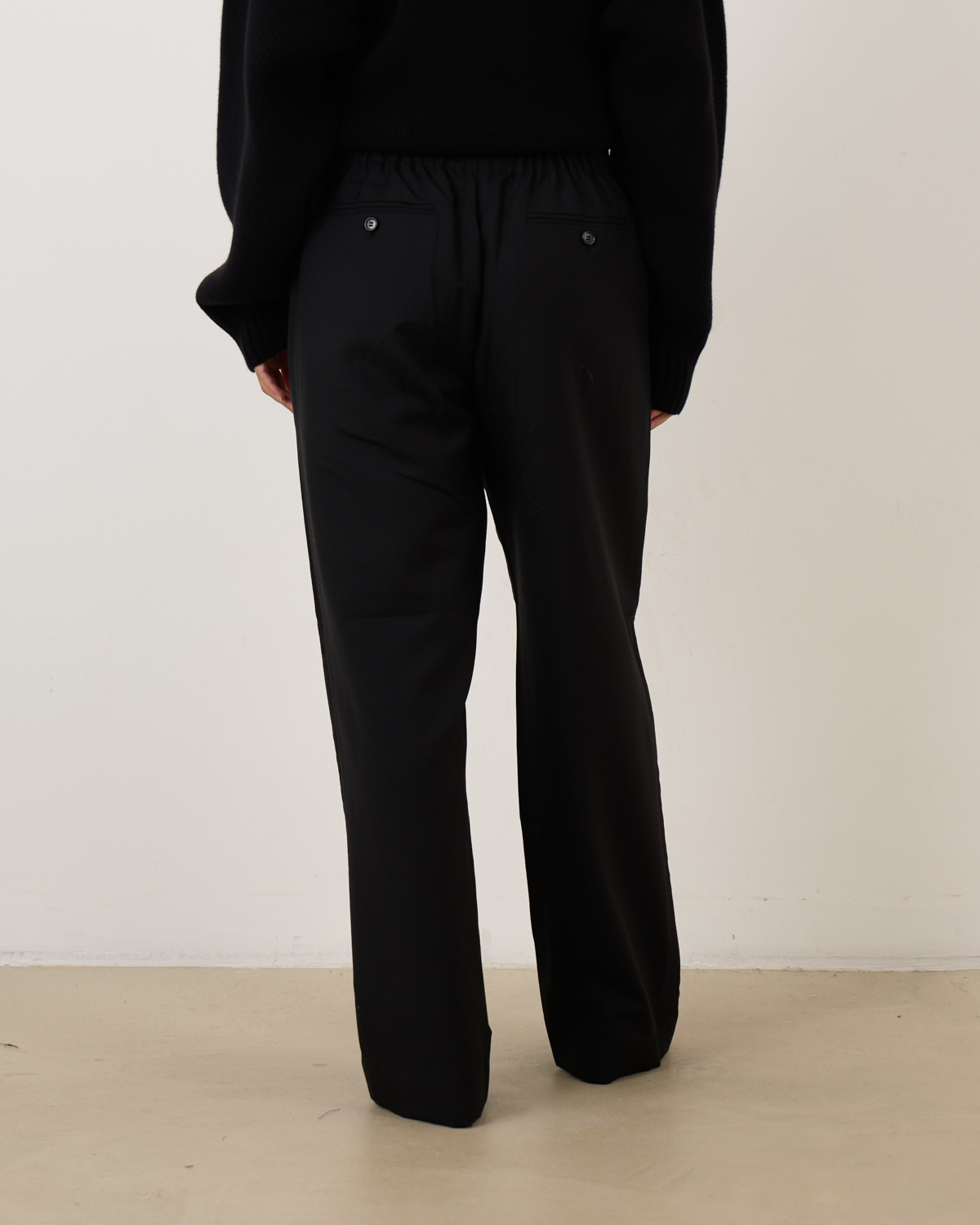 Deze verfijnde tuxedo broek in zwart combineert klassieke elegantie met hedendaags comfort. Het luxueuze materiaal van 93% non-mulesed wol met 7% mohair voelt zacht aan en behoudt zijn vorm perfect. De relaxed-fit pasvorm zorgt voor bewegingsvrijheid terwijl de rechte pijpen een gestroomlijnde silhouet creëren. Opvallende details zijn de zijzakken en de elastische tailleband die comfort en stijl samenbrengen.