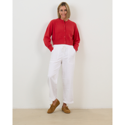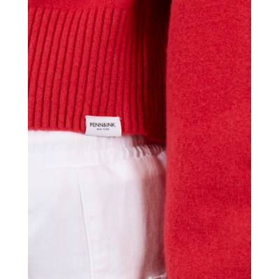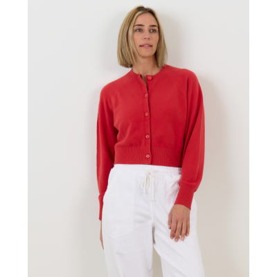 This striking red cardigan brings a bold pop of color to your women's clothing collection. Crafted from a premium cotton blend (58% cotton, 38% nylon, 4% elastane), this cropped cardigan features long sleeves with ribbed cuffs and hem detailing. The crew neckline and button-front closure with matching red buttons create a clean, polished look. The regular fit ensures comfortable wear throughout the day. Penn&Ink delivers contemporary design with this versatile piece that adds personality to any outfit.