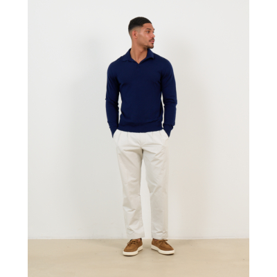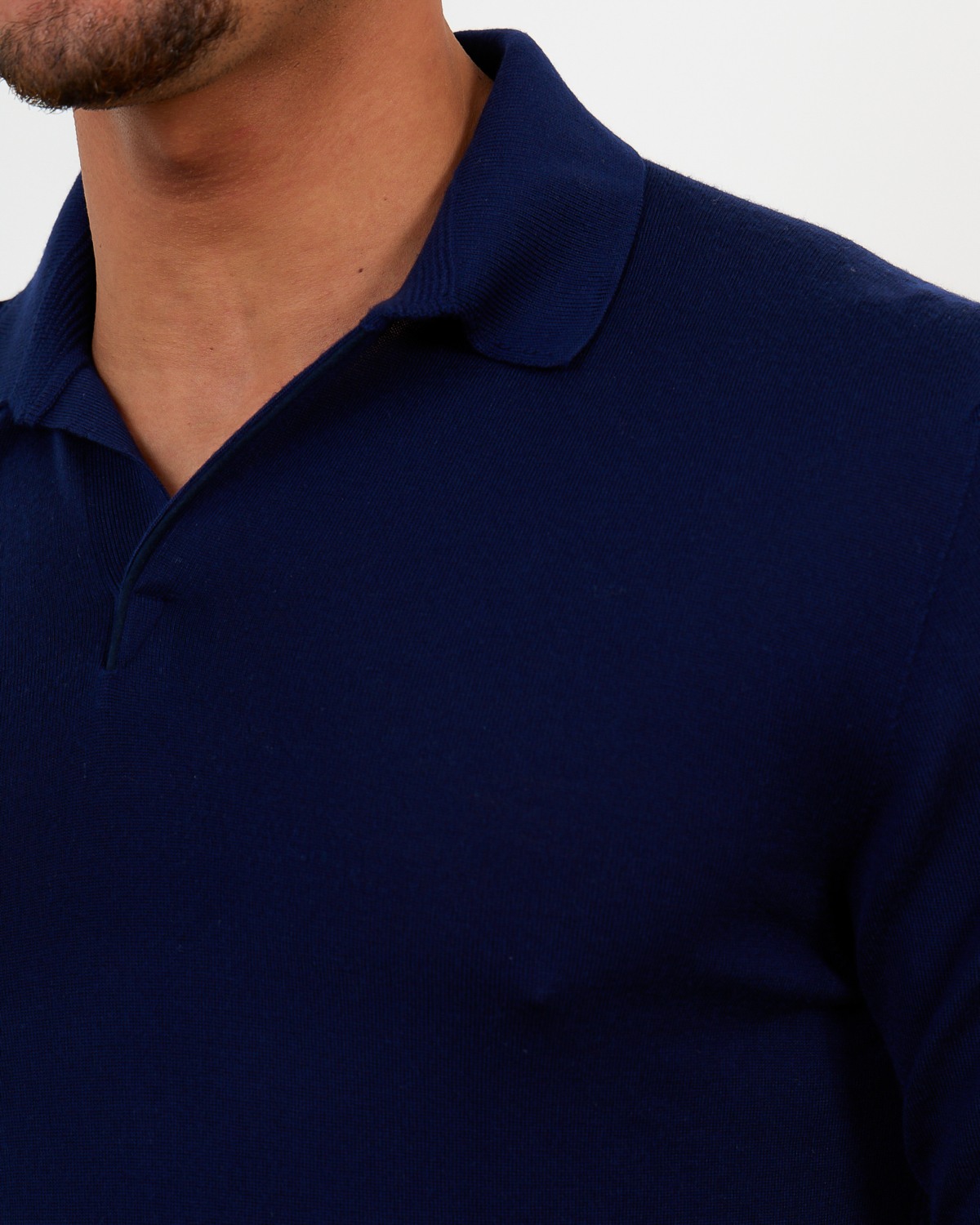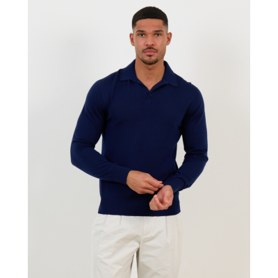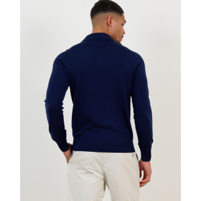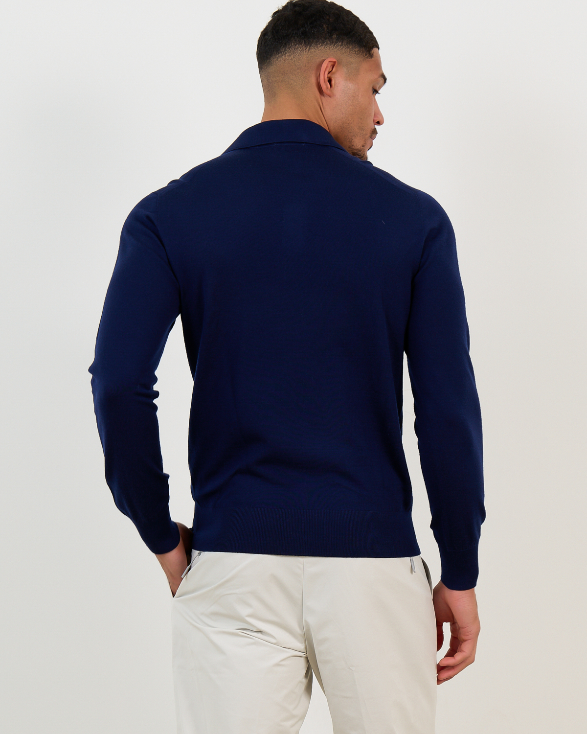 This navy blue polo pullover from Sease brings refined men's clothing to your wardrobe. Crafted from 100% wool, the pullover features long sleeves and a classic polo collar with button closure. The rich navy blue color adds depth while the regular fit ensures comfortable movement. The wool construction provides natural temperature regulation and lasting quality.