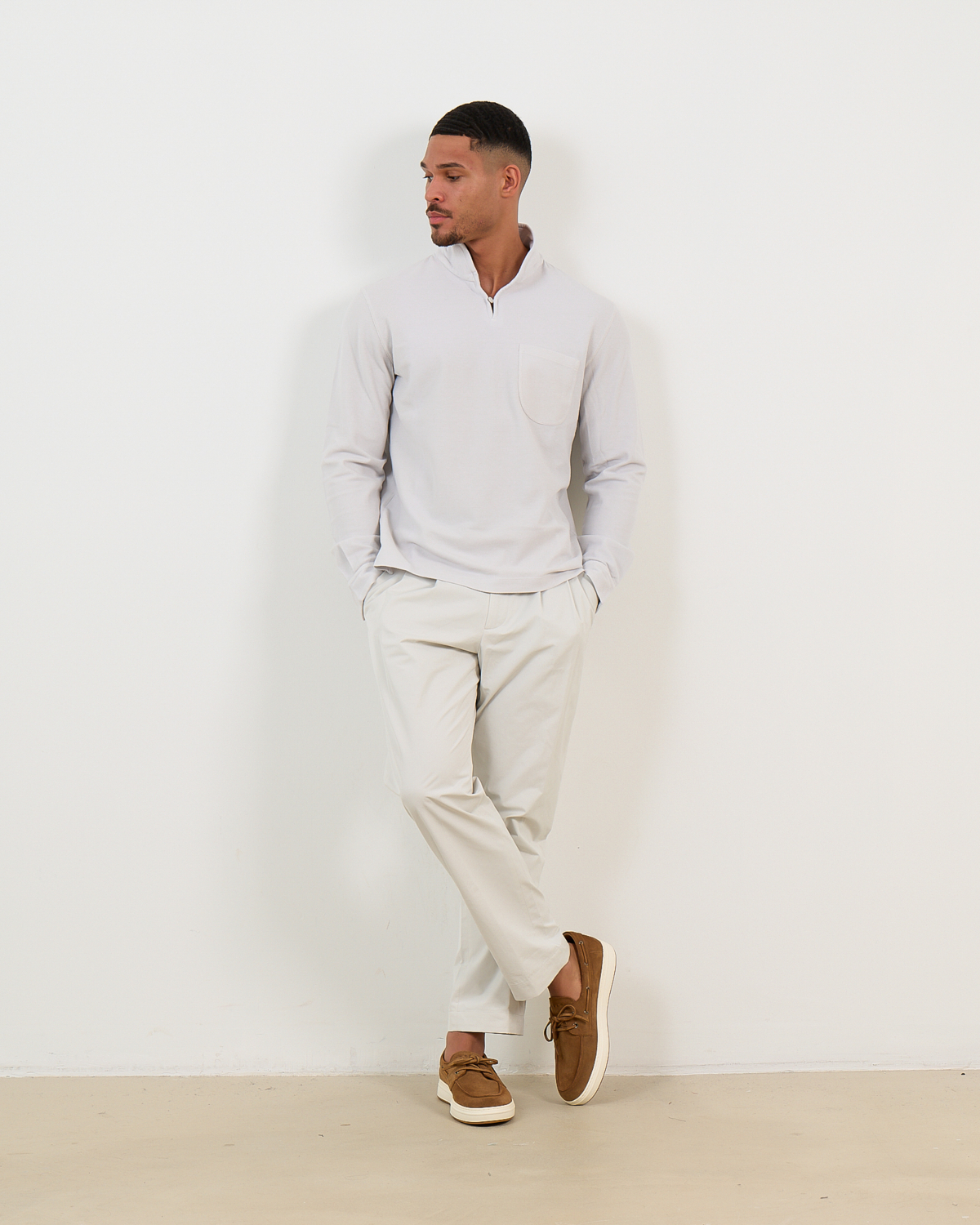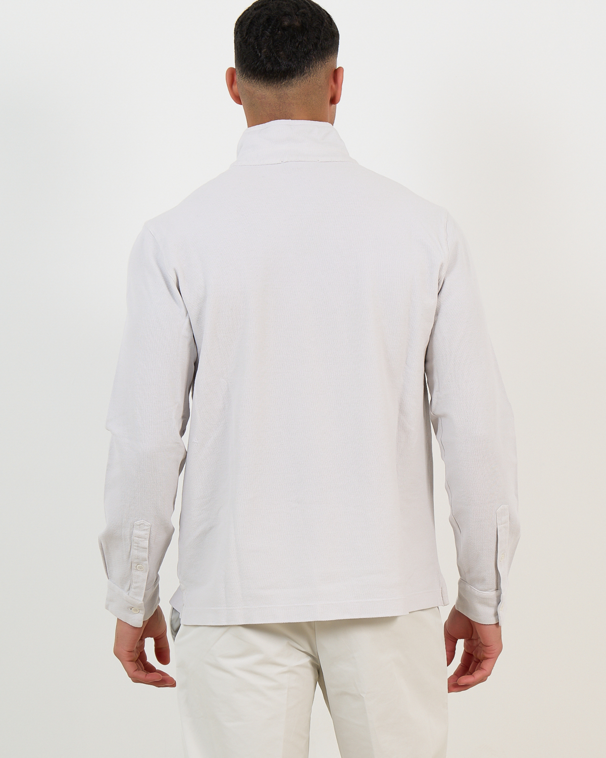 This refined grey polo from Sease brings contemporary elegance to men's clothing. Crafted from 100% cotton with a textured pique weave, the long-sleeved design features a classic collar and chest pocket for sophisticated detailing. The regular fit ensures comfortable movement while maintaining a polished silhouette. Pearl grey tones add versatility to any look.