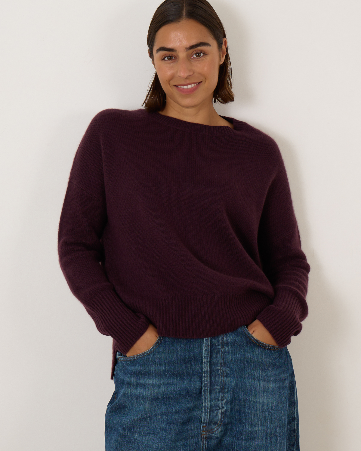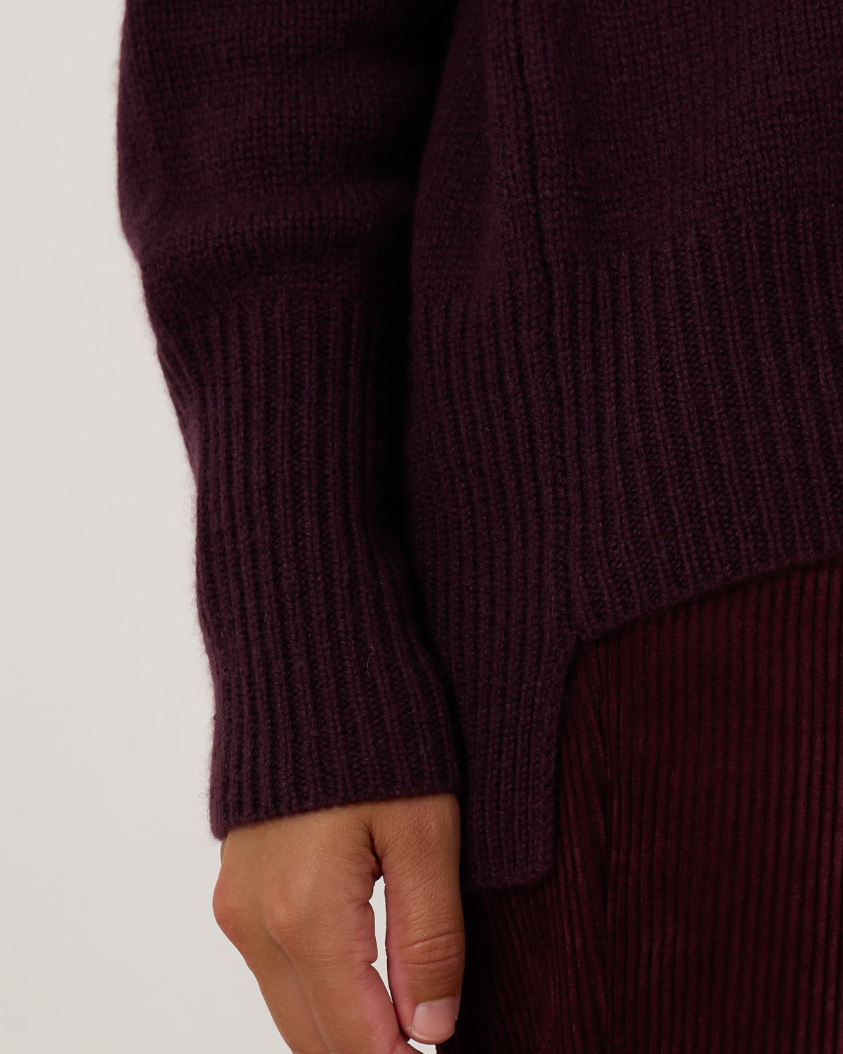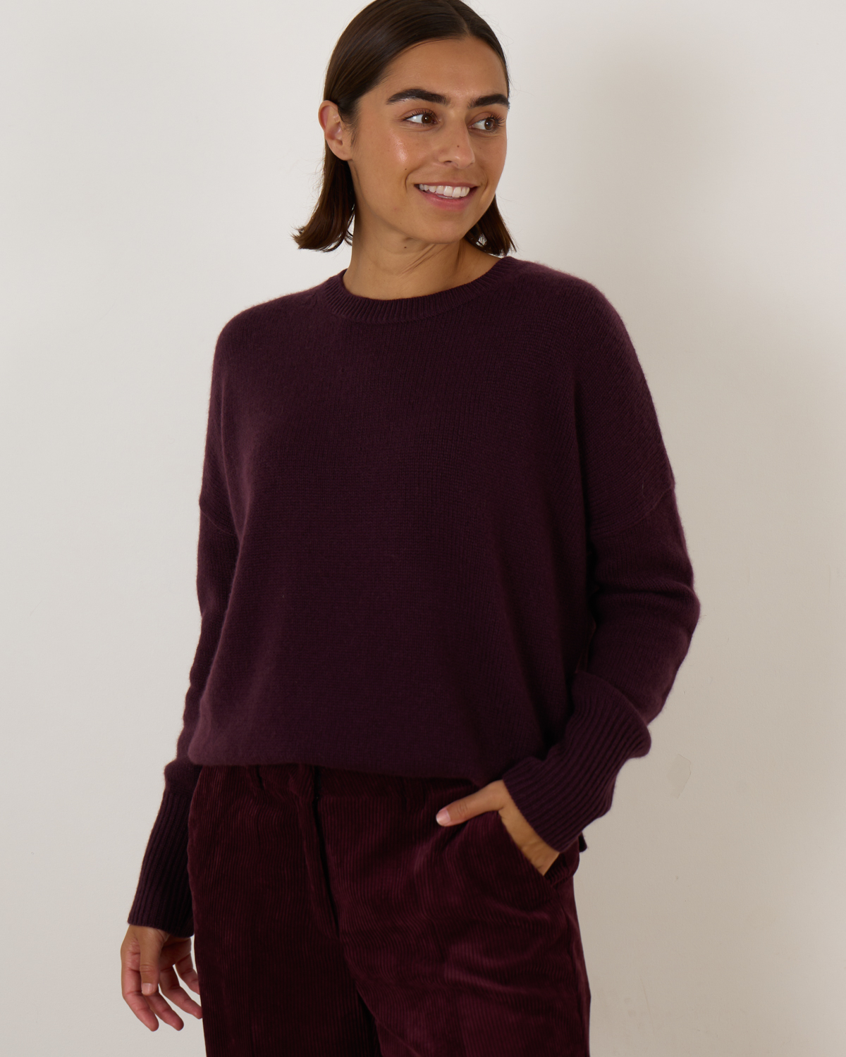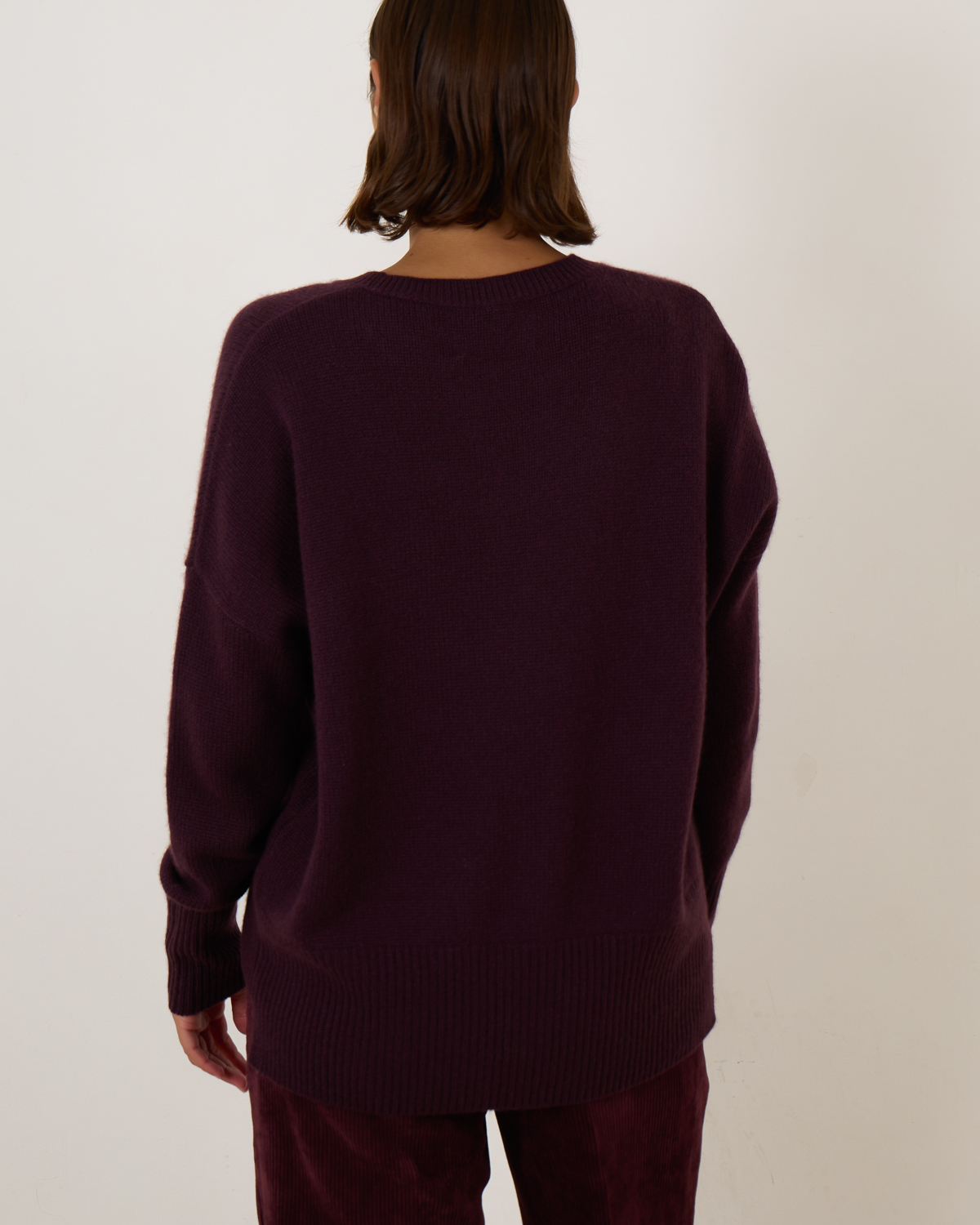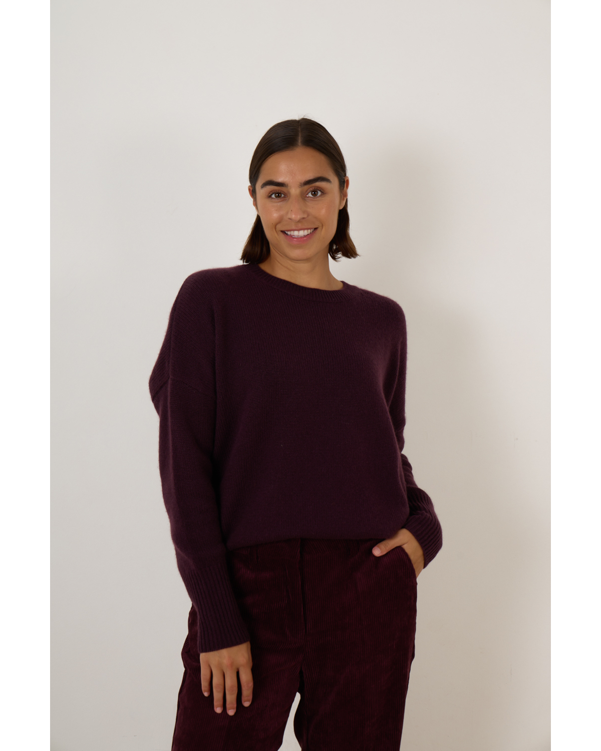 De Mila Pullover van Lisa Yang is een cashmere design om eindeloos te combineren. De pullover biedt een subtiel - wijdvallend silhouet met afhangende schouders en een verlengd achterpand. Het is uitgevoerd in de kleur Mahogany, een mooie bordeaux kleur.