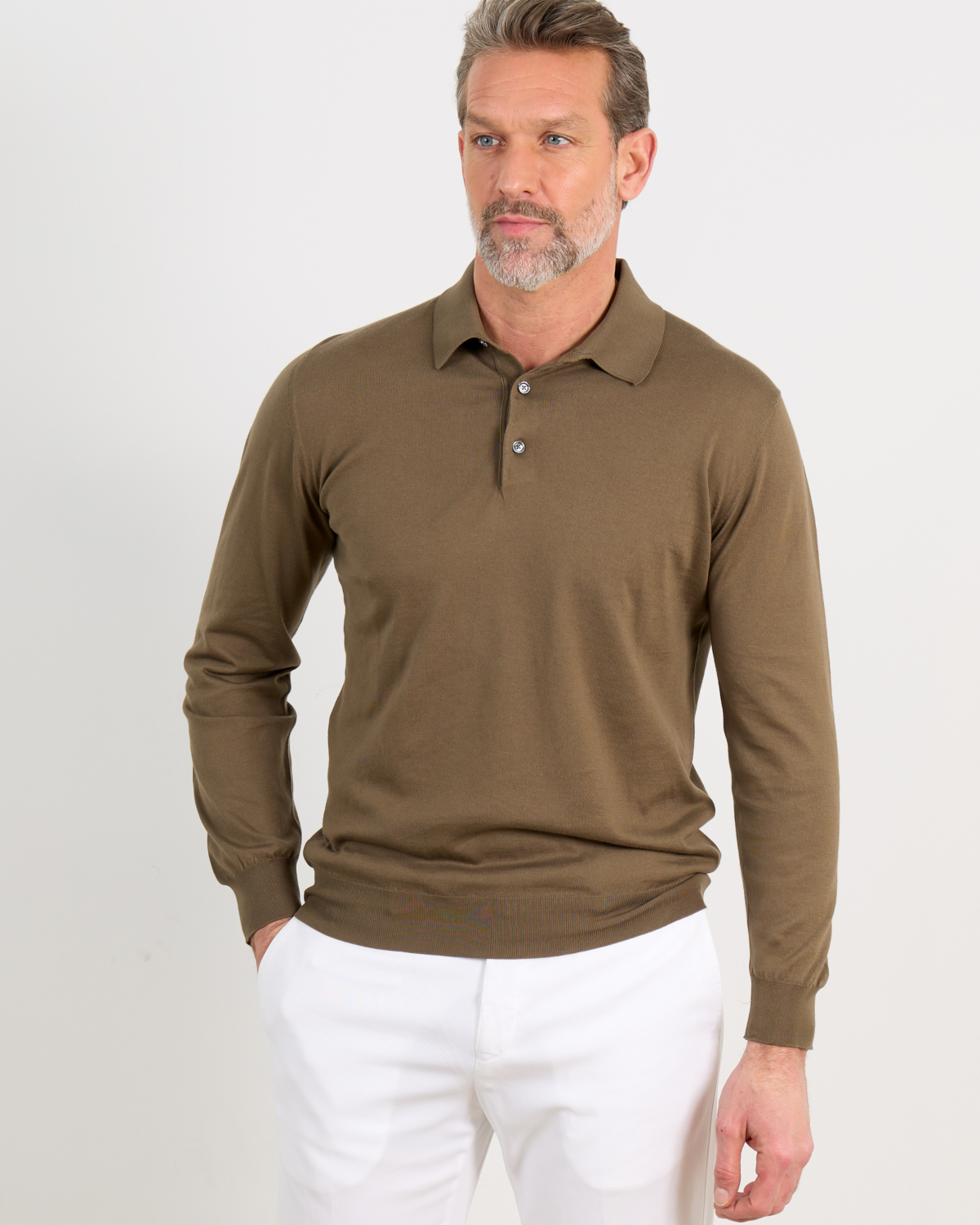 Pair this polo with crisp white chinos for a polished casual look, or layer under a navy blazer with dark denim for smart-casual occasions. The neutral khaki shade complements both earth tones and classic navy pieces beautifully.