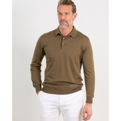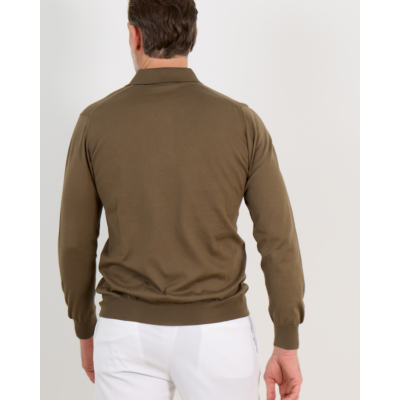 This khaki green polo pullover from Kiton combines classic sophistication with contemporary comfort. Crafted from 100% cotton, the long-sleeved design features a traditional polo collar and two-button closure. The regular fit silhouette ensures comfortable wear throughout the day, while the ribbed cuffs and hem provide a refined finish. The rich khaki tone adds versatility to your men's clothing collection.
