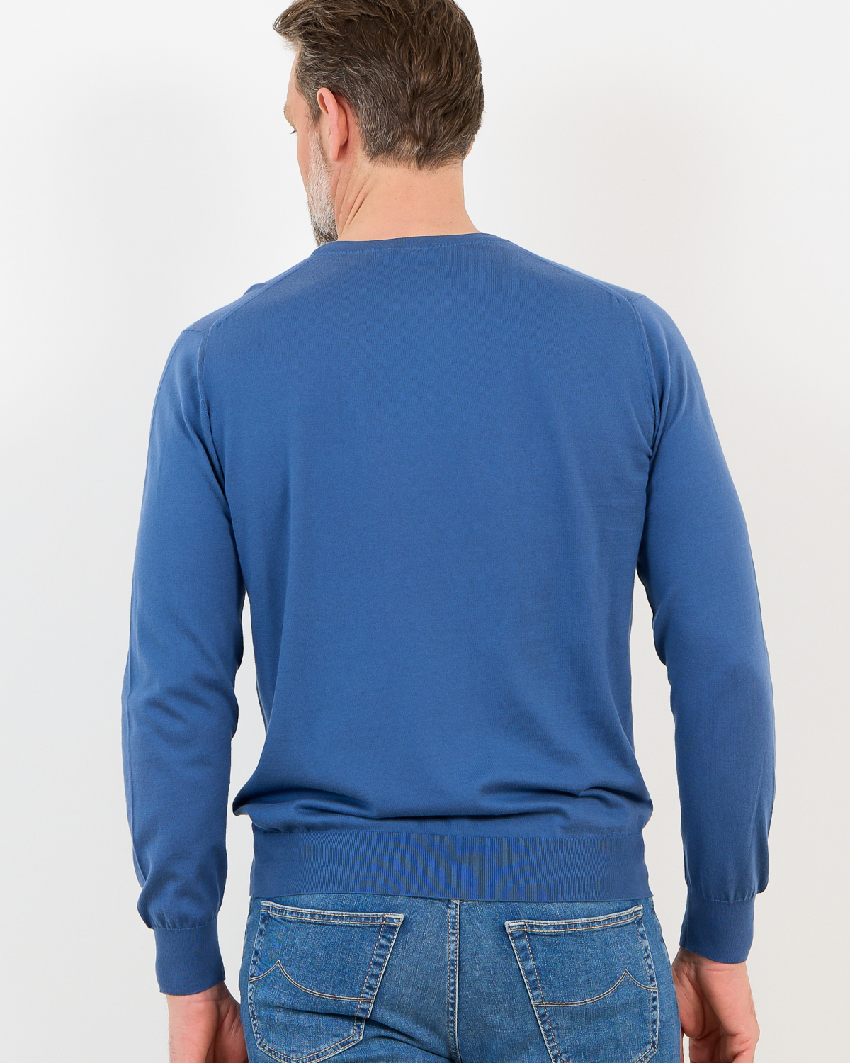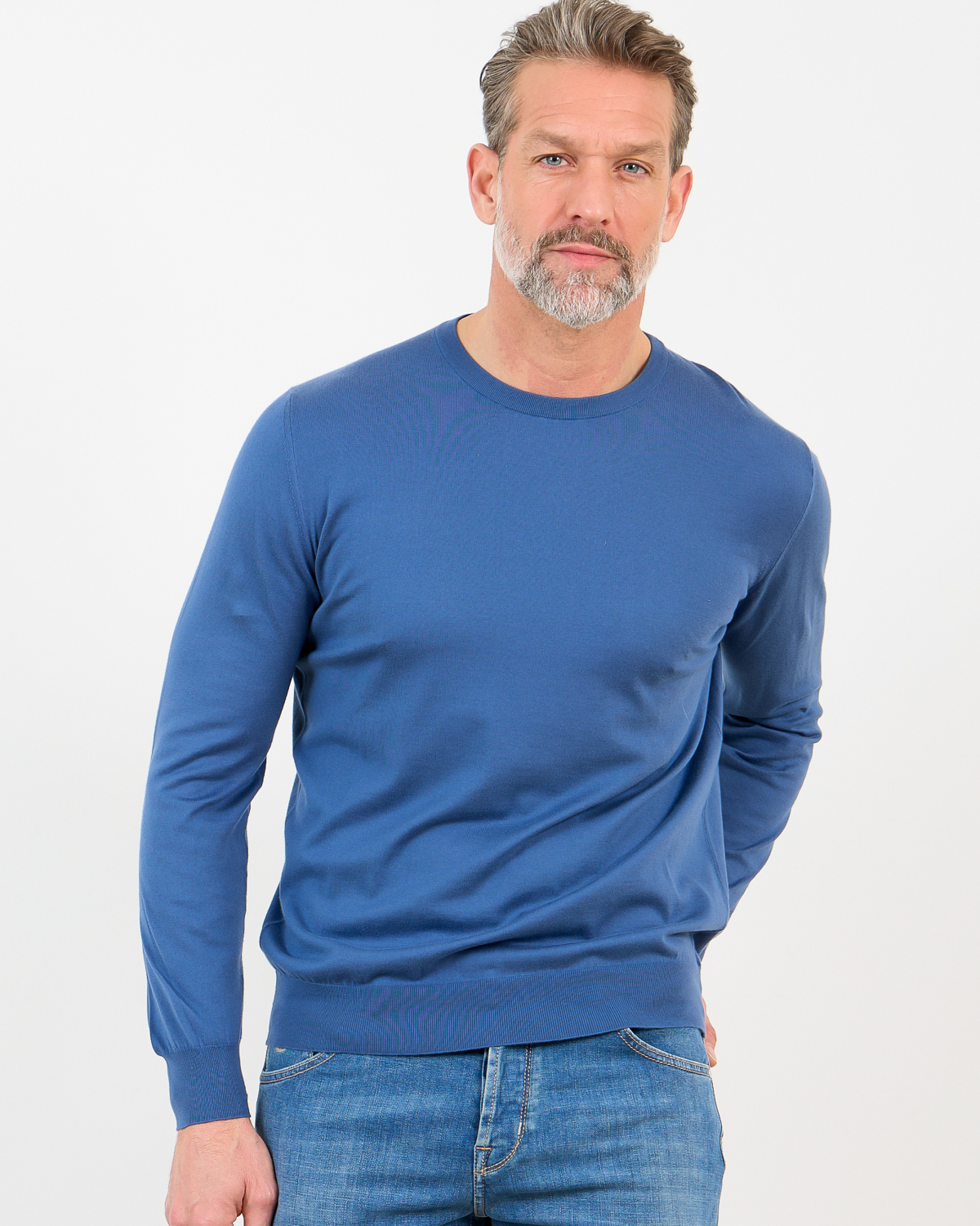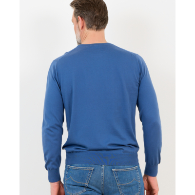 This refined blue pullover combines Italian craftsmanship with contemporary men's clothing design. The 100% cotton construction feels soft against your skin while providing excellent breathability throughout the day. The crew neck and long sleeves create a clean silhouette, enhanced by ribbed detailing at the neckline, cuffs, and hem. The regular fit offers comfortable movement while maintaining a polished appearance. From Kiton, this piece represents exceptional quality and attention to detail.