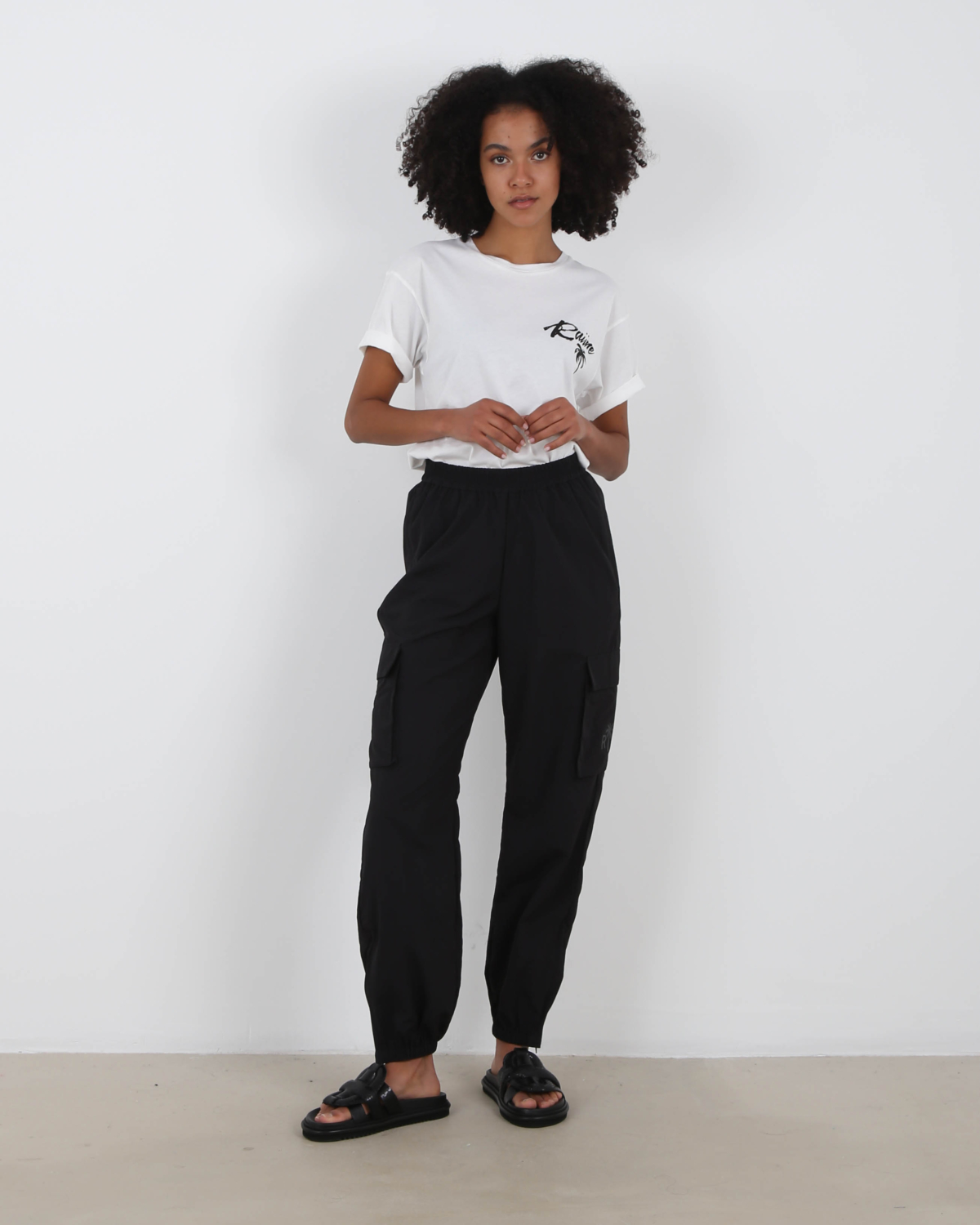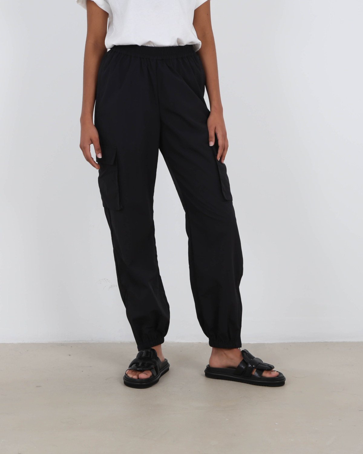 The pants have a regular fit and an elastic waistband, making the pants comfortable and well-fitting. Furthermore, the pants are finished with large cargo pockets and a zipper at the hem for an adjustable trouser leg, which provides an extra cool touch.