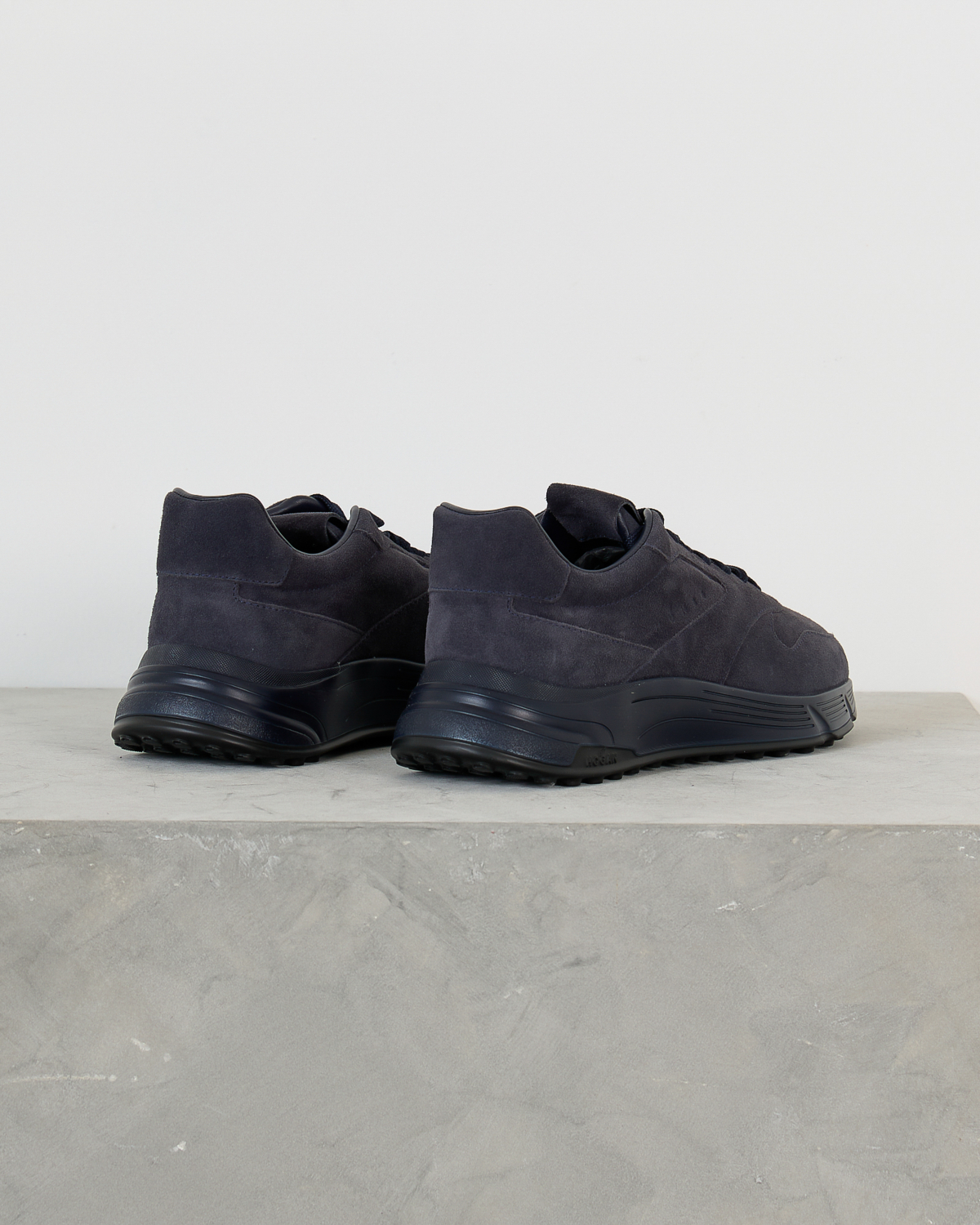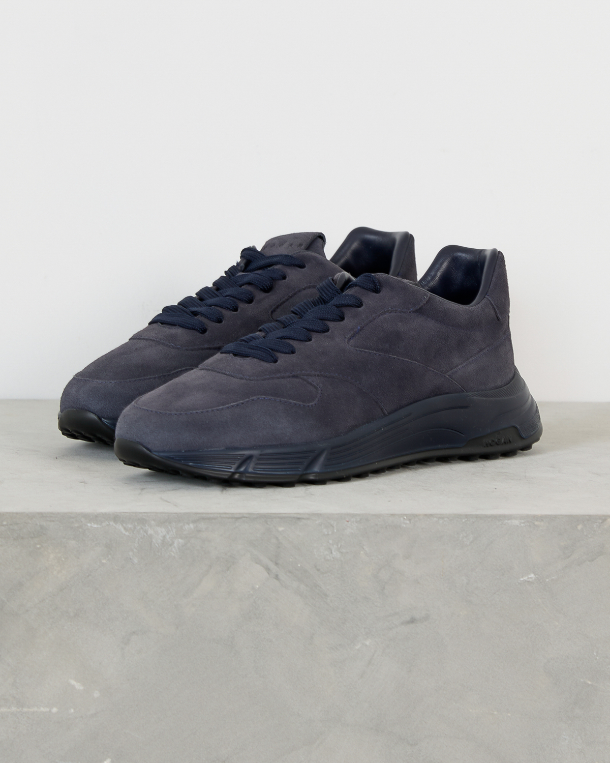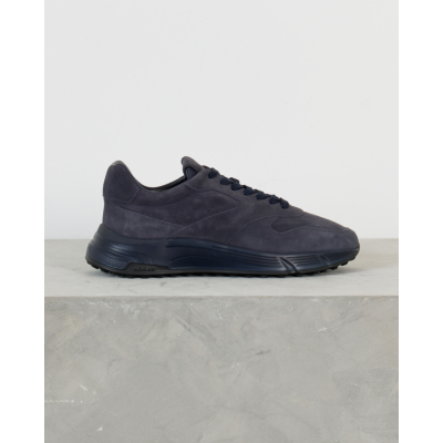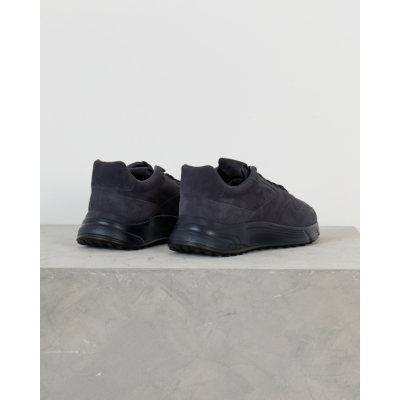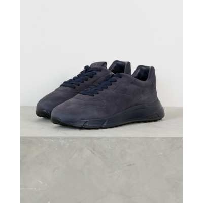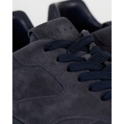 This navy sneaker from Hogan combines sophisticated suede craftsmanship with contemporary men's clothing style. The rich navy suede upper features tonal stitching details and a sleek low-top silhouette. The lace-up closure with matching navy laces provides a secure fit, while the textured rubber sole delivers both grip and modern design appeal.