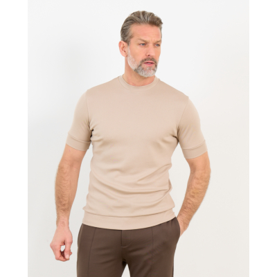 This sophisticated beige t-shirt from Stefan Brandt combines classic comfort with refined style. The 100% cotton construction provides natural breathability and softness against your skin. The regular fit delivers comfortable movement while maintaining a polished silhouette. The crew neckline and short sleeves create a timeless foundation for versatile men's clothing styling. The ribbed collar and cuffs add structured detail to this essential piece.