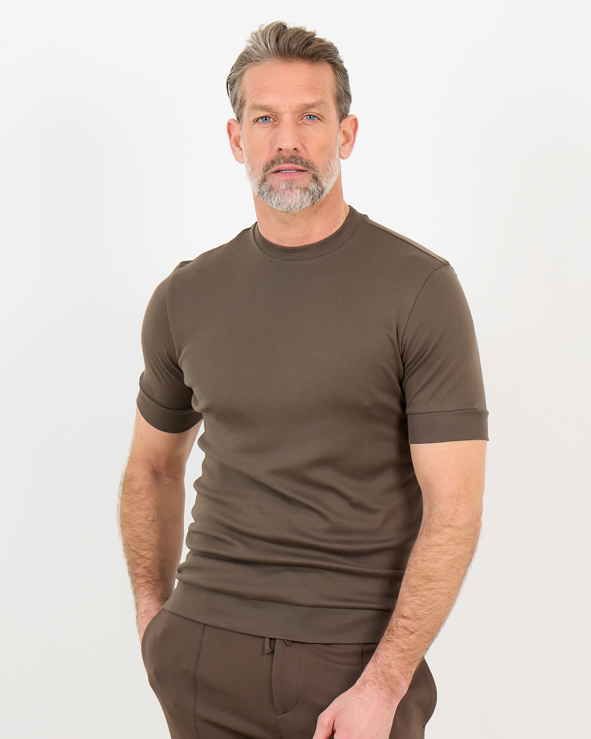 This khaki green men's t-shirt delivers sophisticated comfort with its premium 100% cotton construction. The regular fit creates a refined silhouette that moves naturally with you, while the crew neck and short sleeves offer timeless versatility. The rich khaki green shade brings an earthy elegance to your men's clothing collection. Crafted by Stefan Brandt, this essential piece combines quality craftsmanship with contemporary style. Pair it with tailored trousers for a smart casual look, or combine with jeans and a blazer for refined weekend styling.