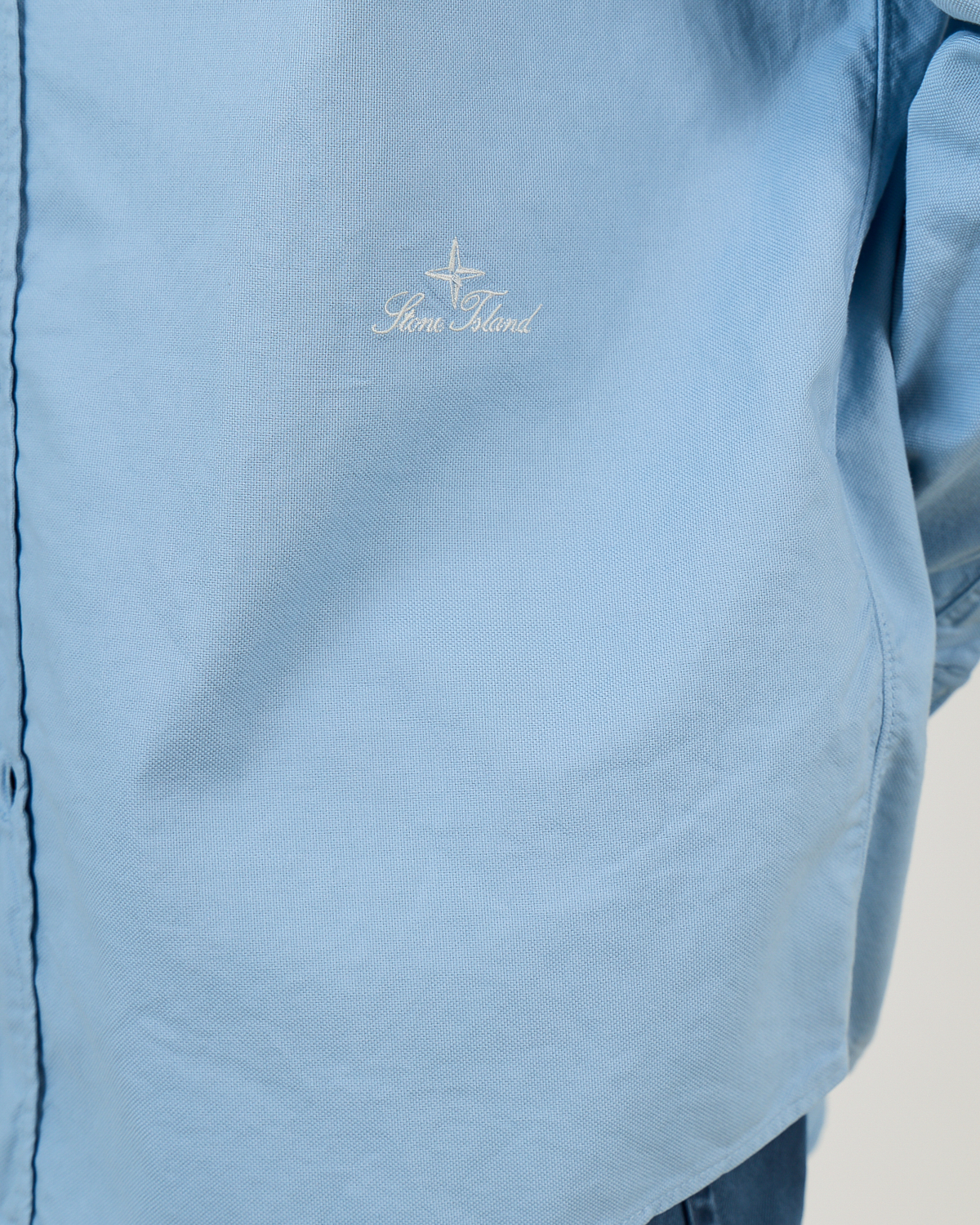 This sophisticated blue long-sleeve shirt from Stone Island brings timeless men's clothing to your collection. Crafted from 100% cotton, the shirt features a classic button-down collar and full button closure with dark buttons that create elegant contrast. The regular fit ensures comfortable wear throughout the day, while the long sleeves with buttoned cuffs add refined detailing. The subtle Stone Island logo embroidery on the chest provides an authentic designer touch to this versatile piece.