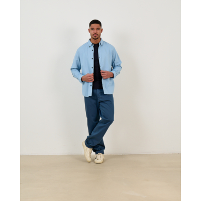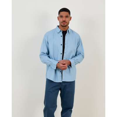 Style this blue button-down shirt with dark denim and leather sneakers for a smart casual look, or pair it with chinos and dress shoes for business occasions. Layer it under a wool sweater during cooler months, or wear it open over a basic tee for relaxed weekend styling.