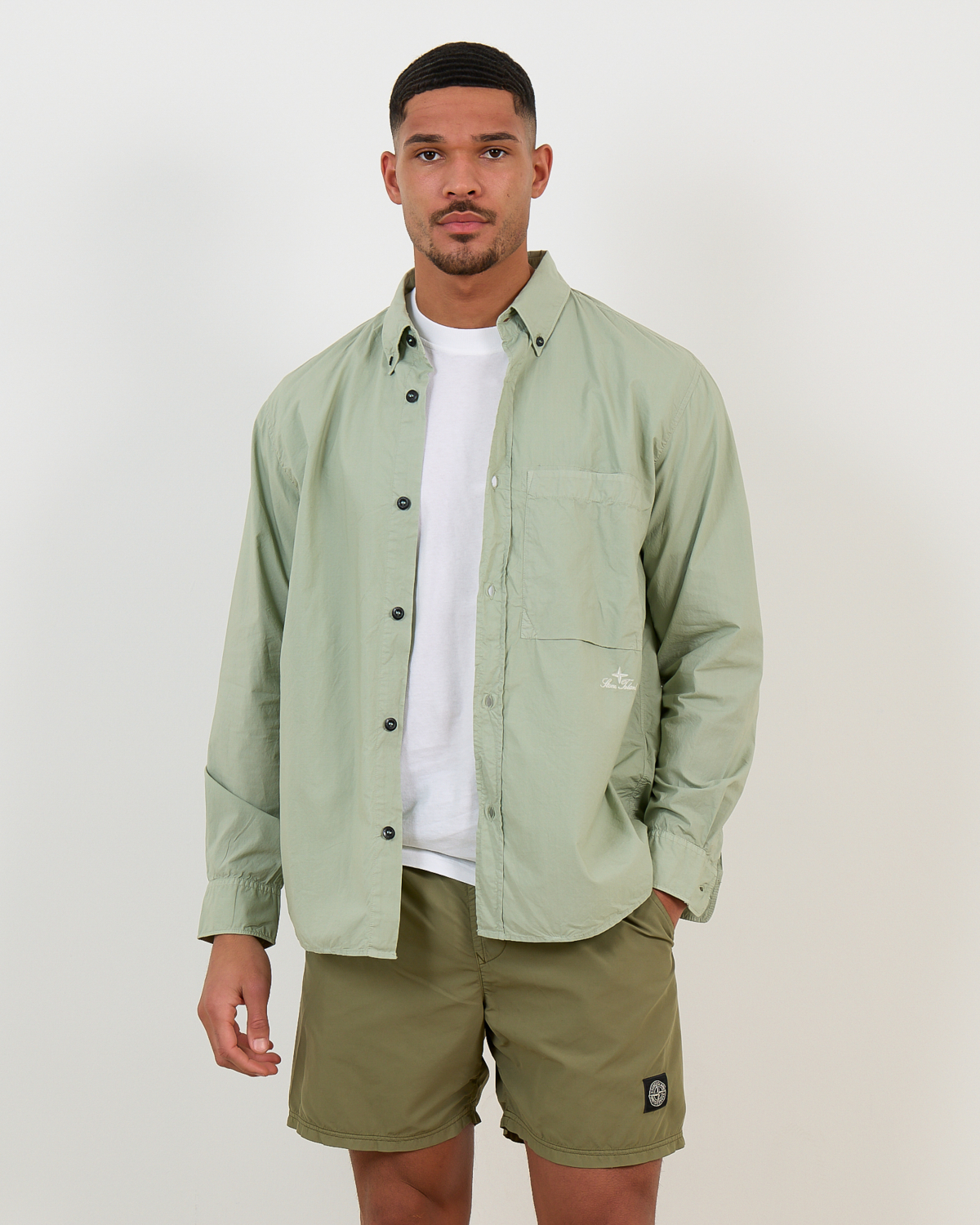 This light green overshirt from Stone Island brings contemporary style to your men's clothing collection. Crafted from 100% cotton, the fabric feels soft yet structured with a relaxed fit that allows comfortable movement throughout the day. The button-down collar and full button closure create a refined silhouette, while the chest pocket adds functional detail. The signature Stone Island compass logo is elegantly embroidered on the chest pocket, showcasing the brand's distinctive heritage.