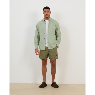 Layer this versatile overshirt over a white t-shirt for relaxed weekend looks, or combine with chinos and sneakers for smart casual occasions. The light green shade pairs beautifully with navy shorts or olive trousers for a tonal approach to modern men's fashion.