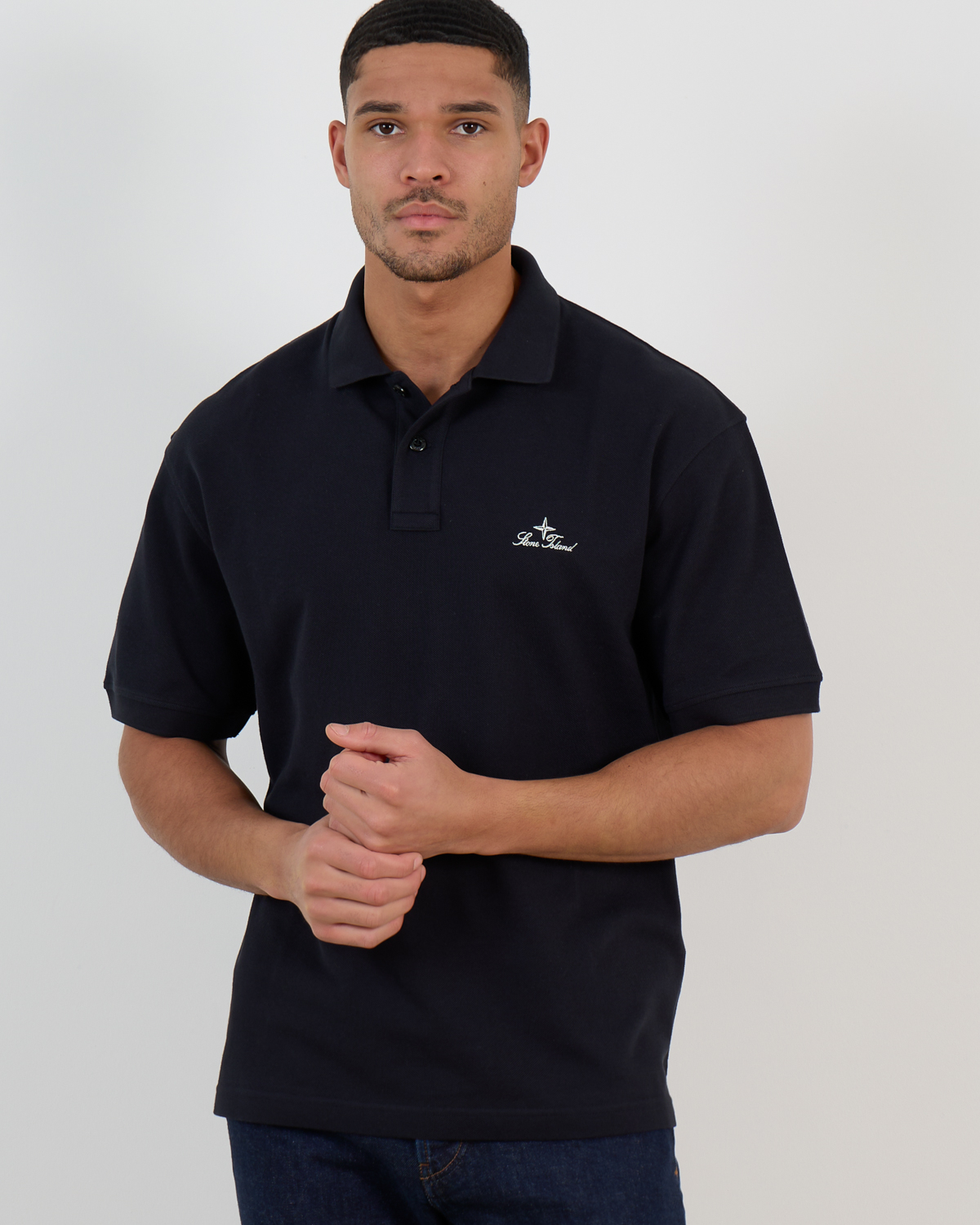This navy blue short sleeve polo shirt combines classic design with contemporary comfort. Crafted from 100% cotton, the fabric feels soft against your skin while maintaining its shape throughout the day. The traditional polo collar and button placket create a refined appearance, while the embroidered Stone Island logo adds an authentic designer touch. The navy shade provides versatile styling options for both casual and smart casual occasions.