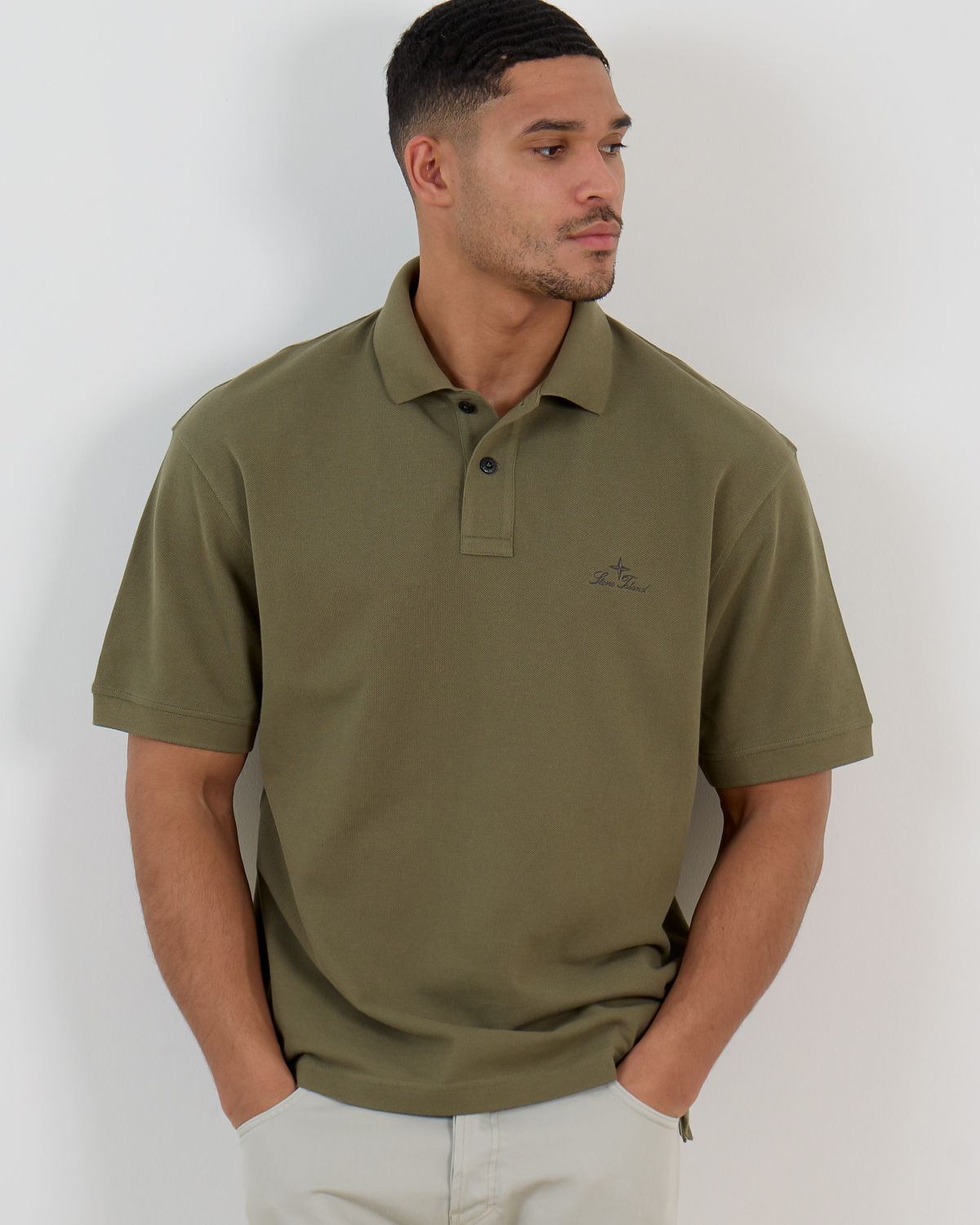 This military green polo from Stone Island delivers timeless men's clothing with contemporary appeal. The rich green shade brings depth and versatility to your wardrobe, while the 100% cotton construction ensures breathable comfort throughout the day. Features a classic polo collar with three-button placket and the signature Stone Island logo embroidered on the chest. The regular fit provides a comfortable silhouette that moves naturally with you.