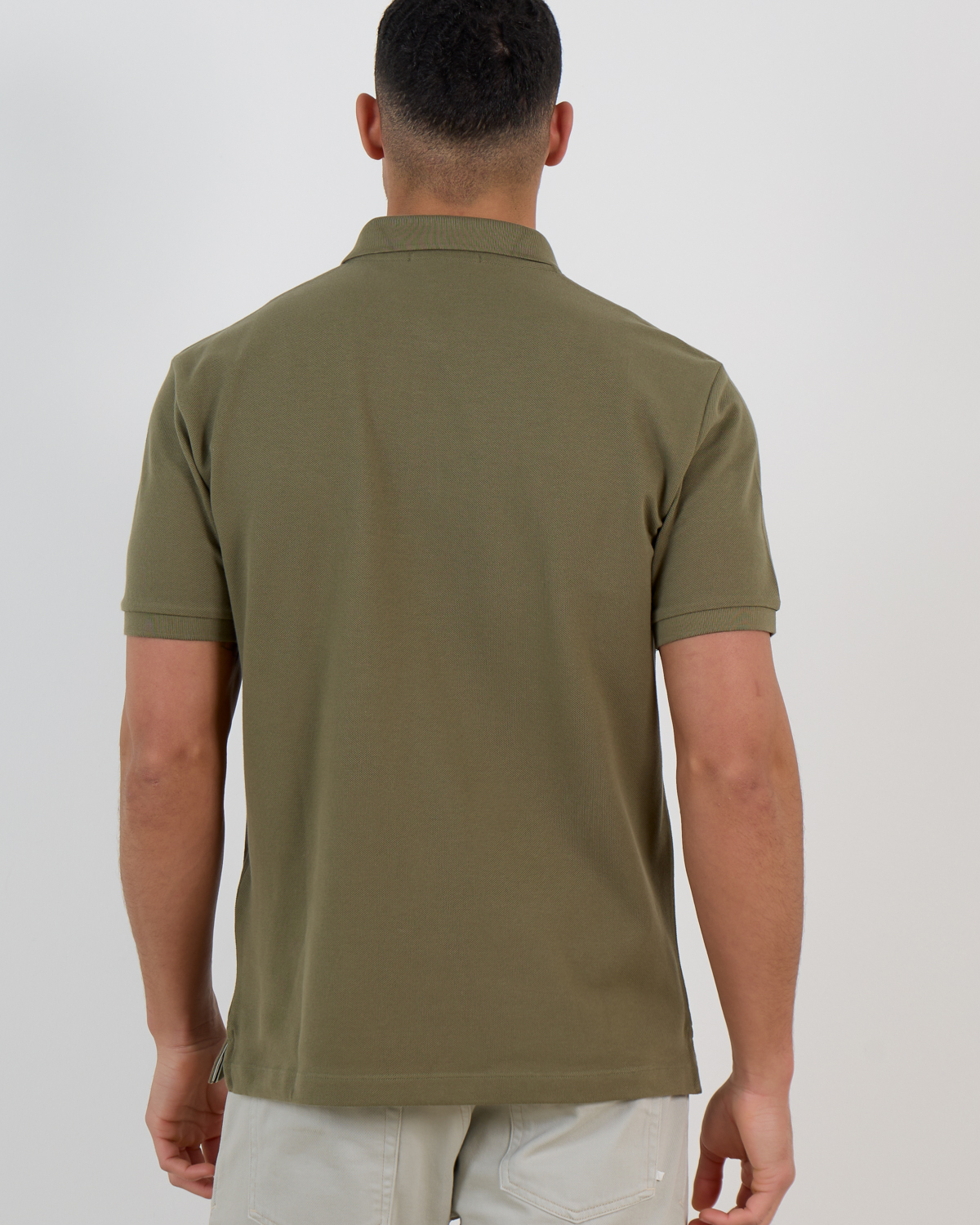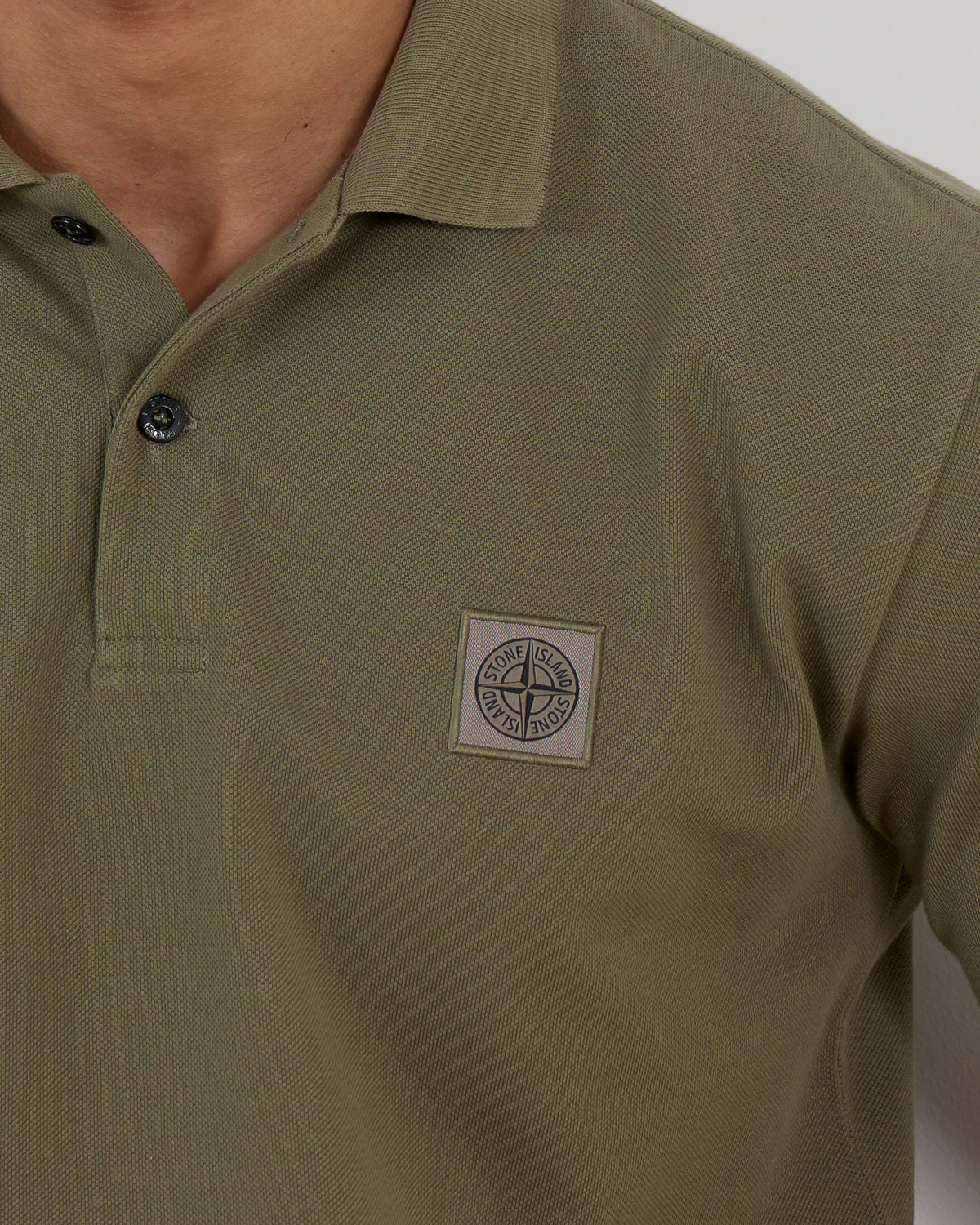 This military green polo shirt combines classic polo styling with contemporary men's clothing design. Crafted from 100% cotton, the fabric offers breathable comfort and a refined texture. The regular fit provides comfortable movement while maintaining a polished silhouette. Features include a traditional polo collar, two-button placket closure, and the distinctive Stone Island compass badge positioned on the chest. The short sleeves and clean finish make this piece ideal for warmer weather.