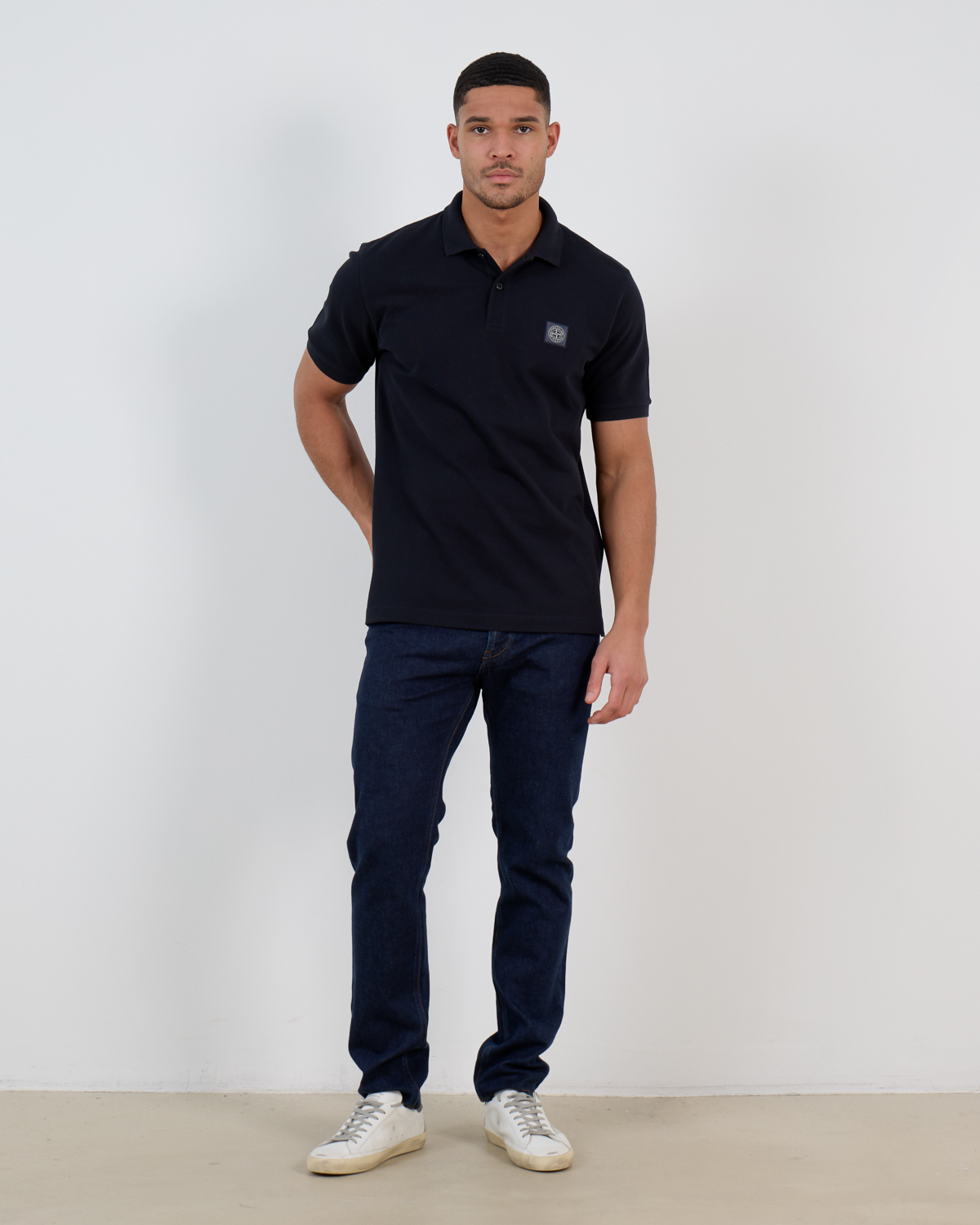 Pair this navy polo with tailored chinos and leather loafers for smart-casual occasions, or combine with dark denim and white sneakers for relaxed weekend styling. The rich navy tone complements both neutral and bold colored bottoms. From Stone Island, this polo shirt brings Italian craftsmanship to your everyday menswear essentials.