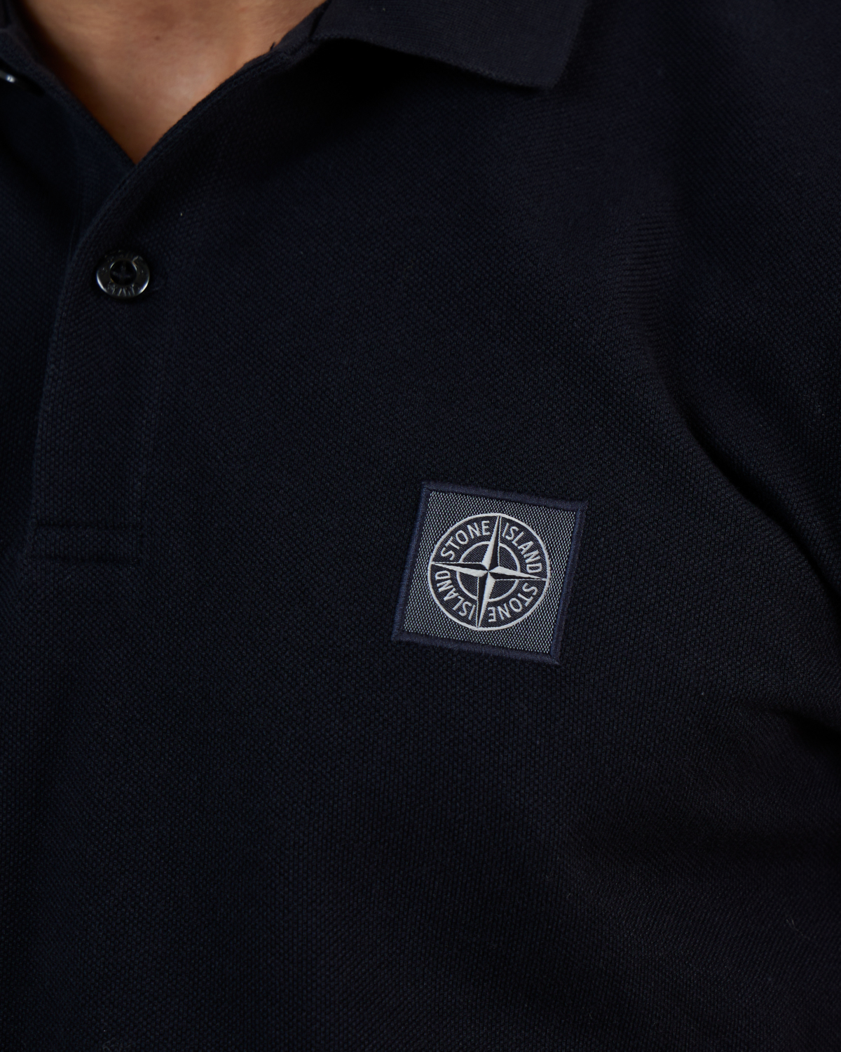 This navy short-sleeve polo shirt merges classic men's clothing style with contemporary comfort. Crafted from 100% cotton with a refined pique texture that feels soft yet structured. The regular fit provides comfortable movement while maintaining a sharp silhouette. The signature Stone Island compass logo badge adds an authentic designer touch to this versatile piece.