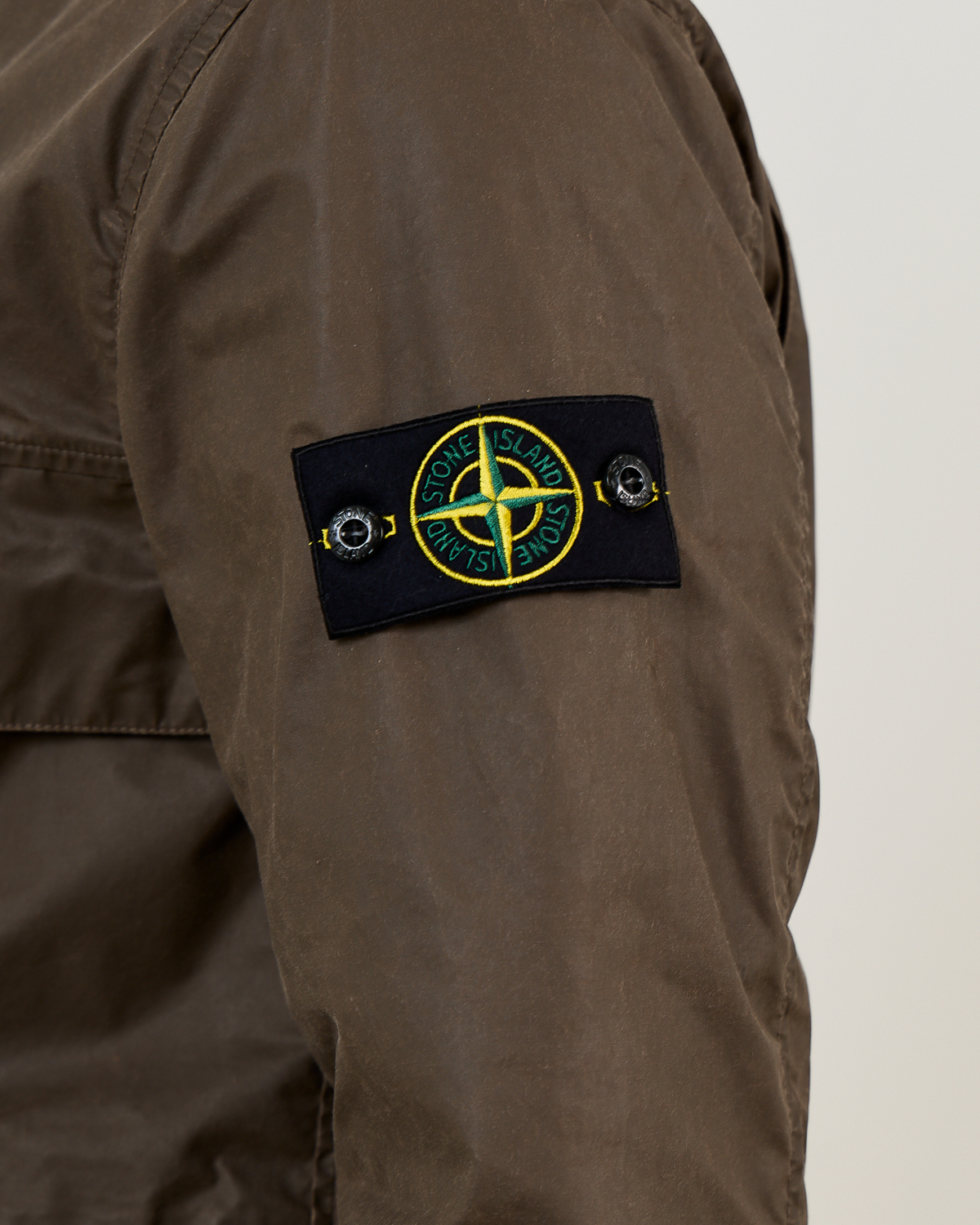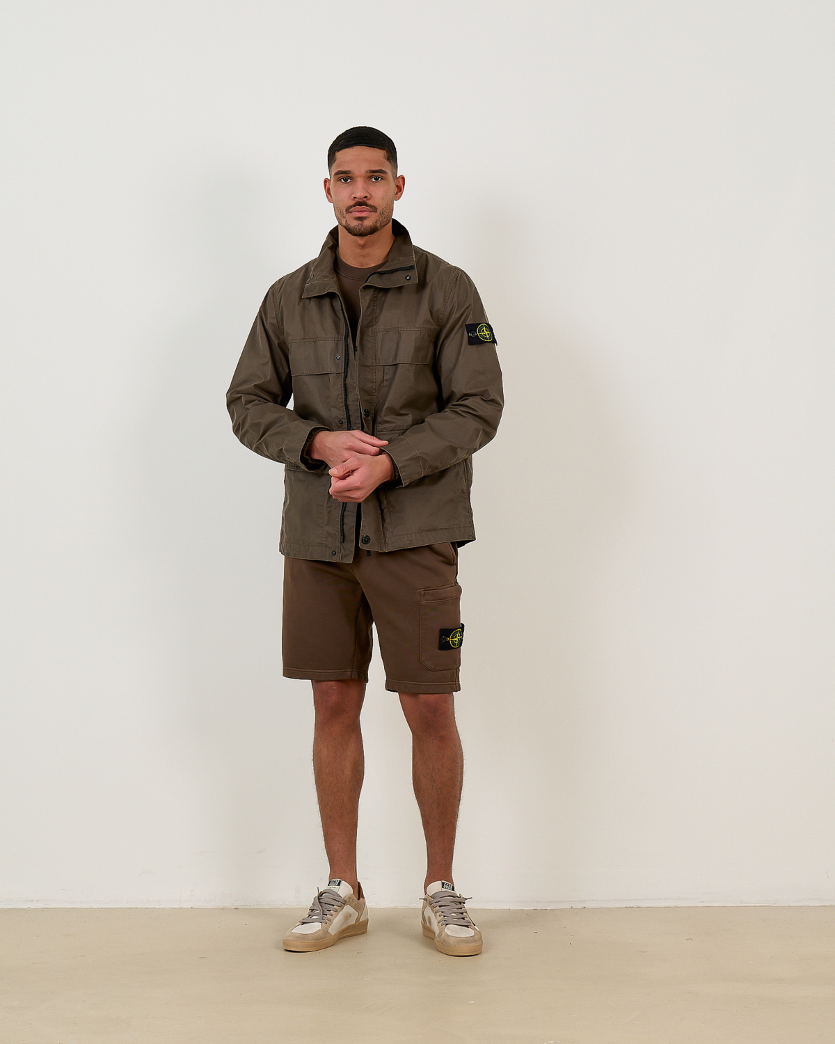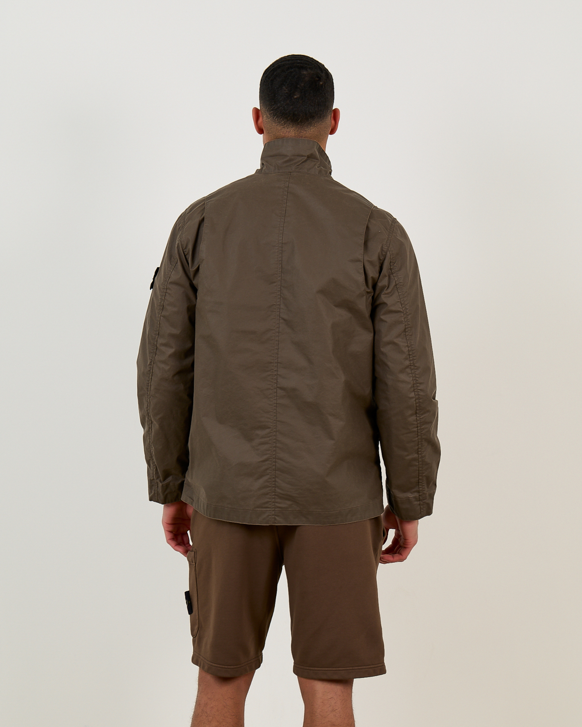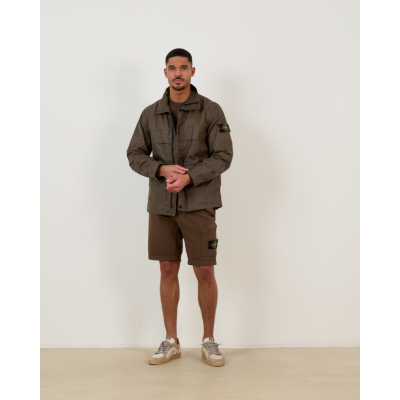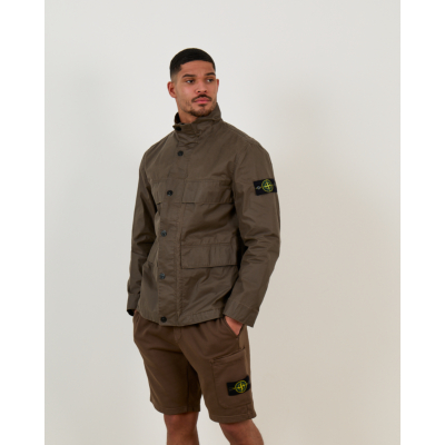 This versatile brown field jacket from Stone Island combines utility and style in sophisticated men's clothing. The regular fit design features a high collar, button-front closure, and practical chest pockets for everyday functionality. Crafted from a durable polyester-cotton blend (65% polyester, 35% cotton), the fabric offers comfort and weather resistance. The iconic Stone Island compass badge on the left sleeve adds authentic brand recognition to this essential men's outerwear piece.