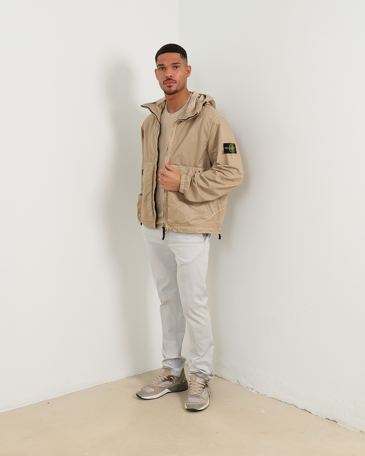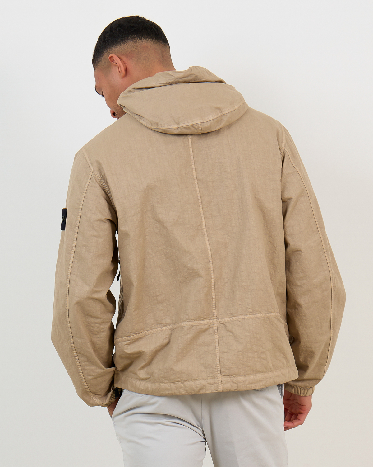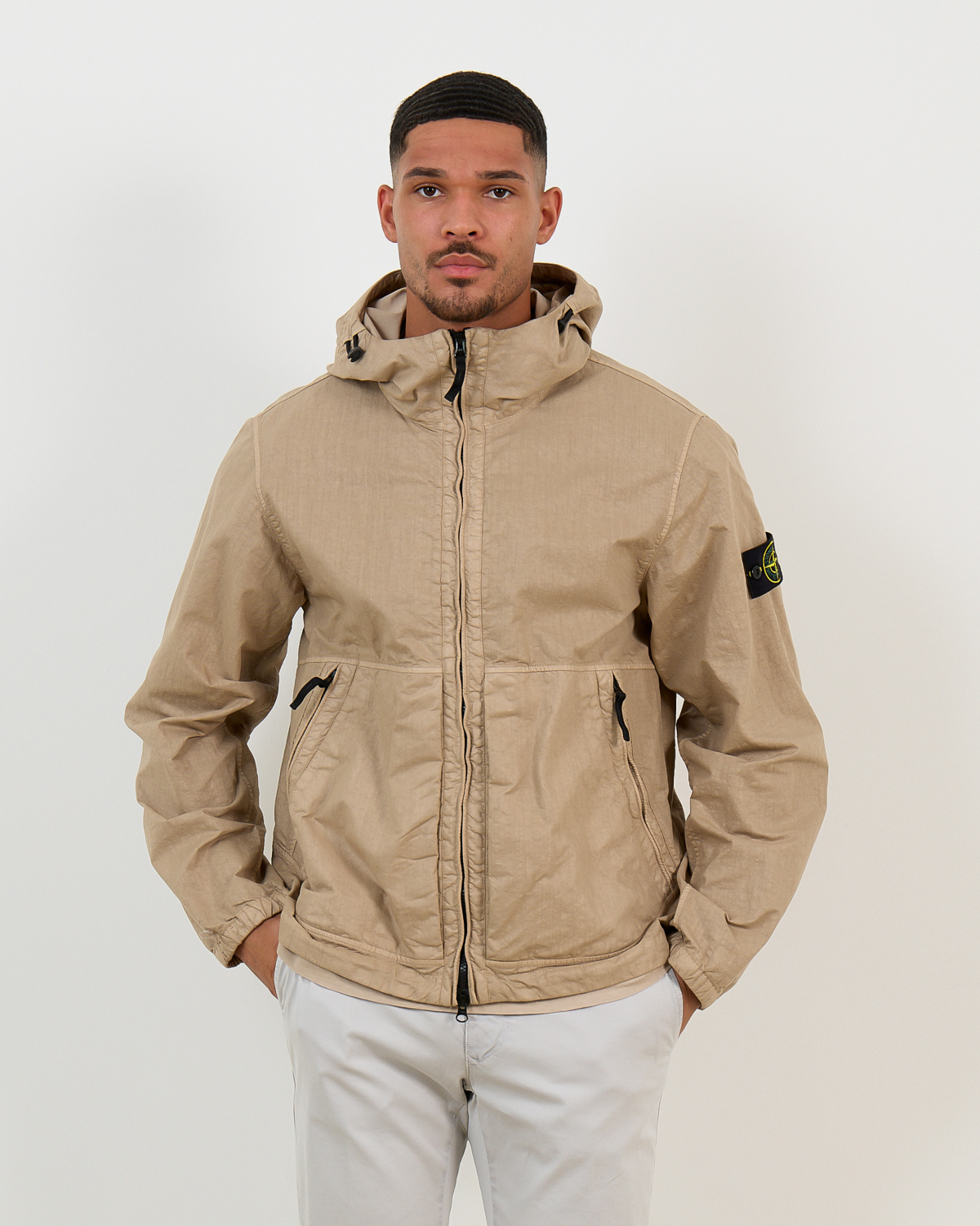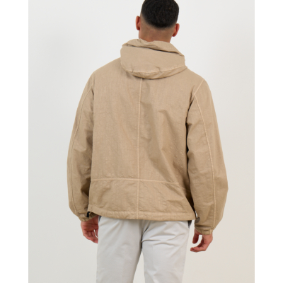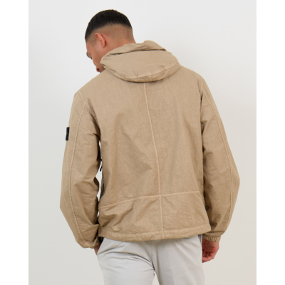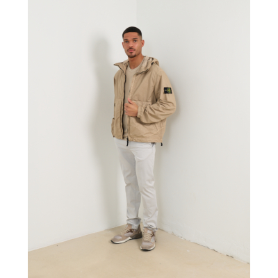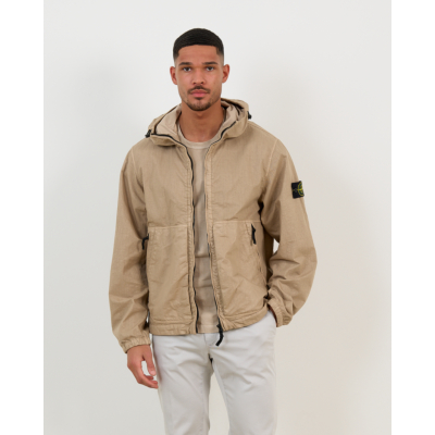 This taupe hooded jacket from Stone Island combines technical performance with contemporary style. Crafted from 100% polyamide, the lightweight nylon fabric offers exceptional durability while maintaining breathability. The relaxed-fit silhouette provides comfortable movement throughout the day. The full-zip closure features an adjustable hood, while practical zippered side pockets add functional appeal. The signature Stone Island badge on the left sleeve adds the brand's distinctive touch to this versatile men's clothing piece.