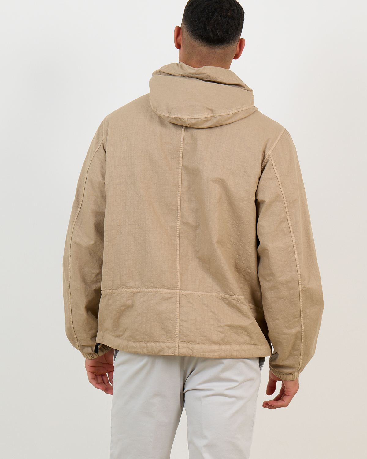 Pair this hooded nylon jacket with tailored chinos and white sneakers for a refined casual look, or layer it over a simple tee with dark jeans for weekend styling.