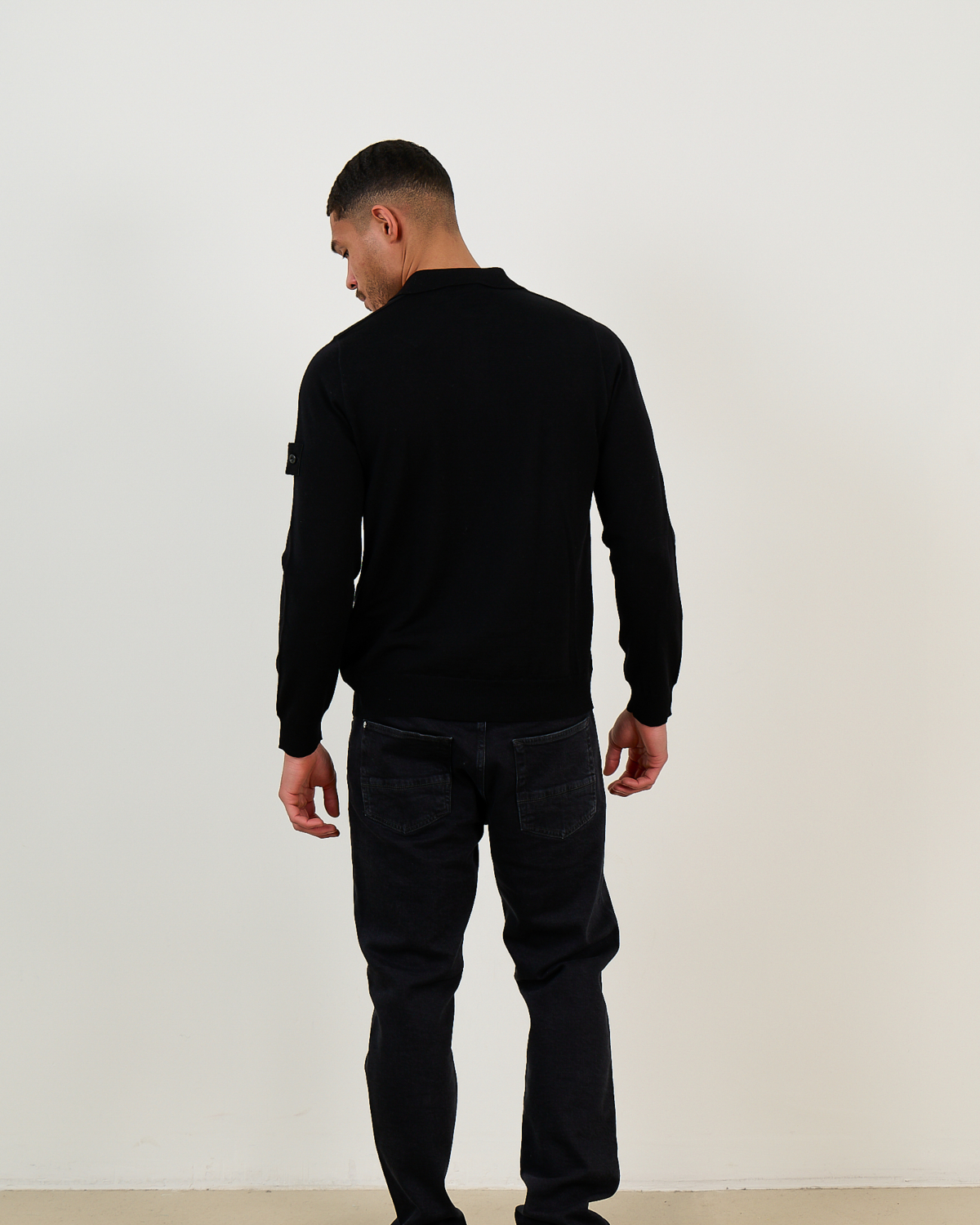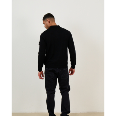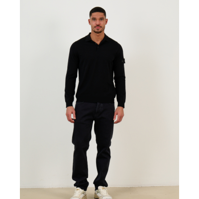 This black long sleeve polo pullover represents sophisticated men's clothing at its finest. Crafted from 100% wool, it offers exceptional warmth and refined texture. The classic polo collar and four-button placket create timeless appeal, while the regular fit ensures comfortable wear throughout the day. A distinctive sleeve pocket adds functional detail to this premium piece from Stone Island.