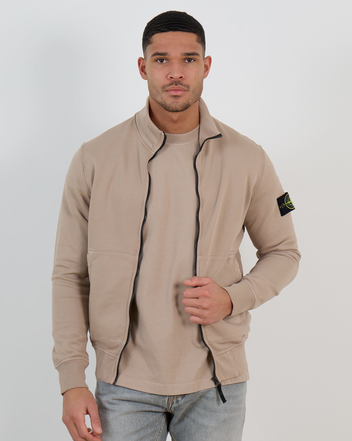 This taupe zip sweatshirt from Stone Island combines contemporary men's clothing design with premium comfort. Crafted from 100% cotton, the regular fit silhouette provides relaxed movement while maintaining a refined structure. The full zip closure features ribbed cuffs and hem for a polished finish. Two front pockets offer practical storage, while the iconic Stone Island compass badge adds distinctive brand recognition to the left sleeve.