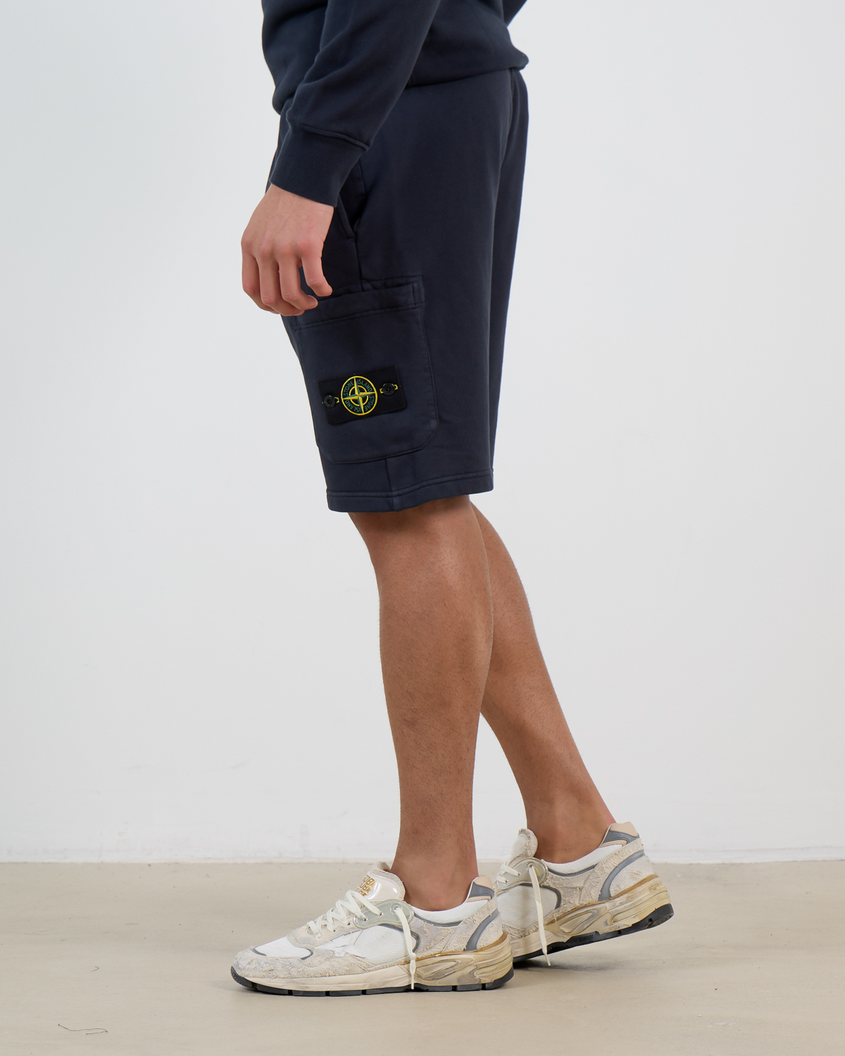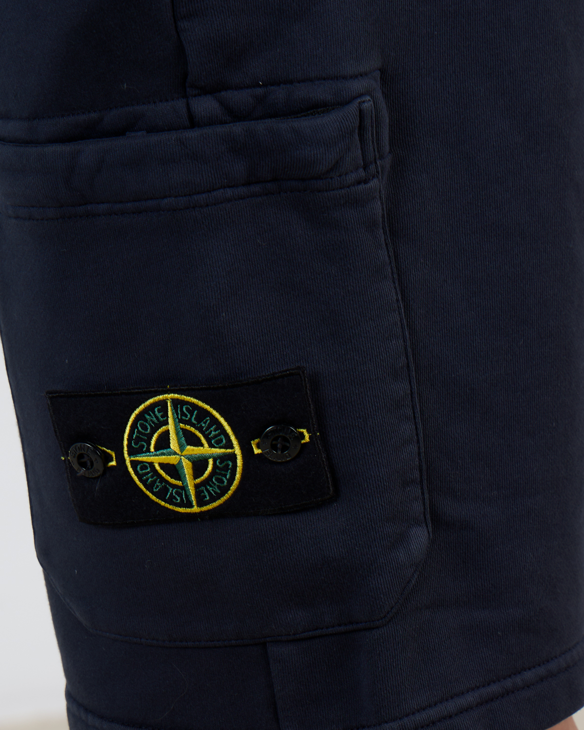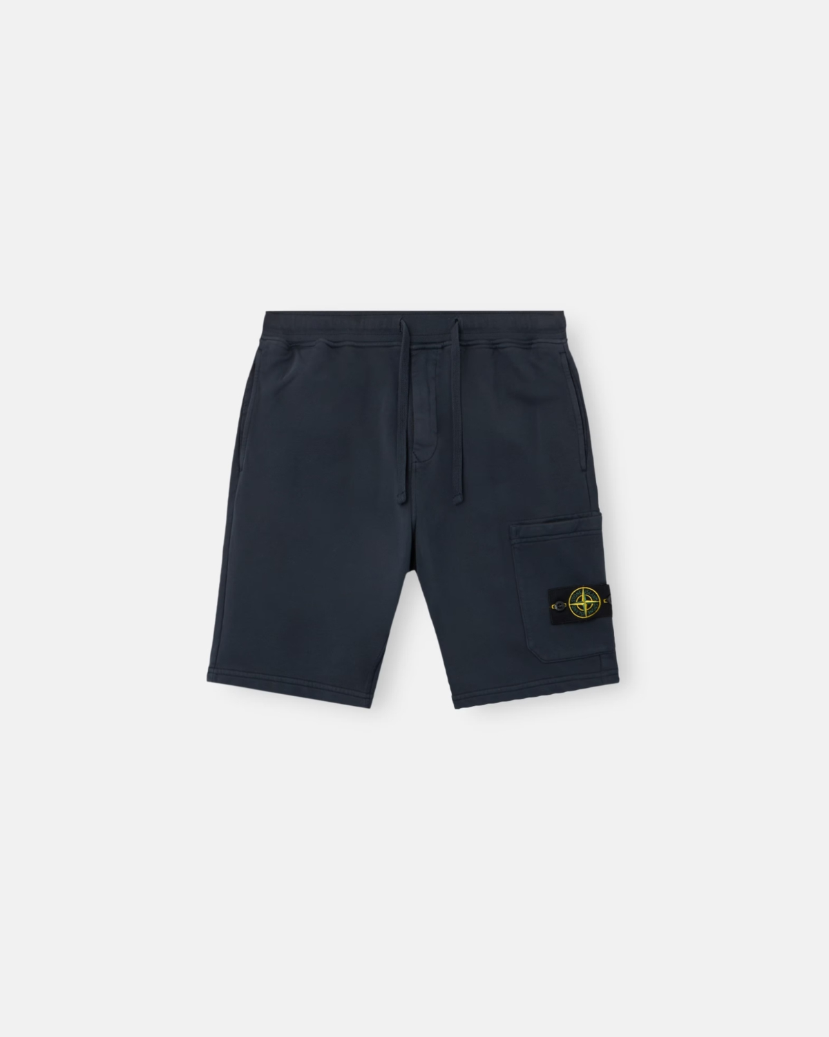 These navy blue fleece shorts from Stone Island combine comfort with refined style. Crafted from 100% cotton fleece, they feature a regular fit that moves naturally with you. The adjustable drawstring waistband ensures a perfect fit, while practical side pockets add functionality. The iconic Stone Island compass badge on the left leg provides an authentic designer touch. The rich navy blue color creates a versatile foundation for your men's clothing collection.