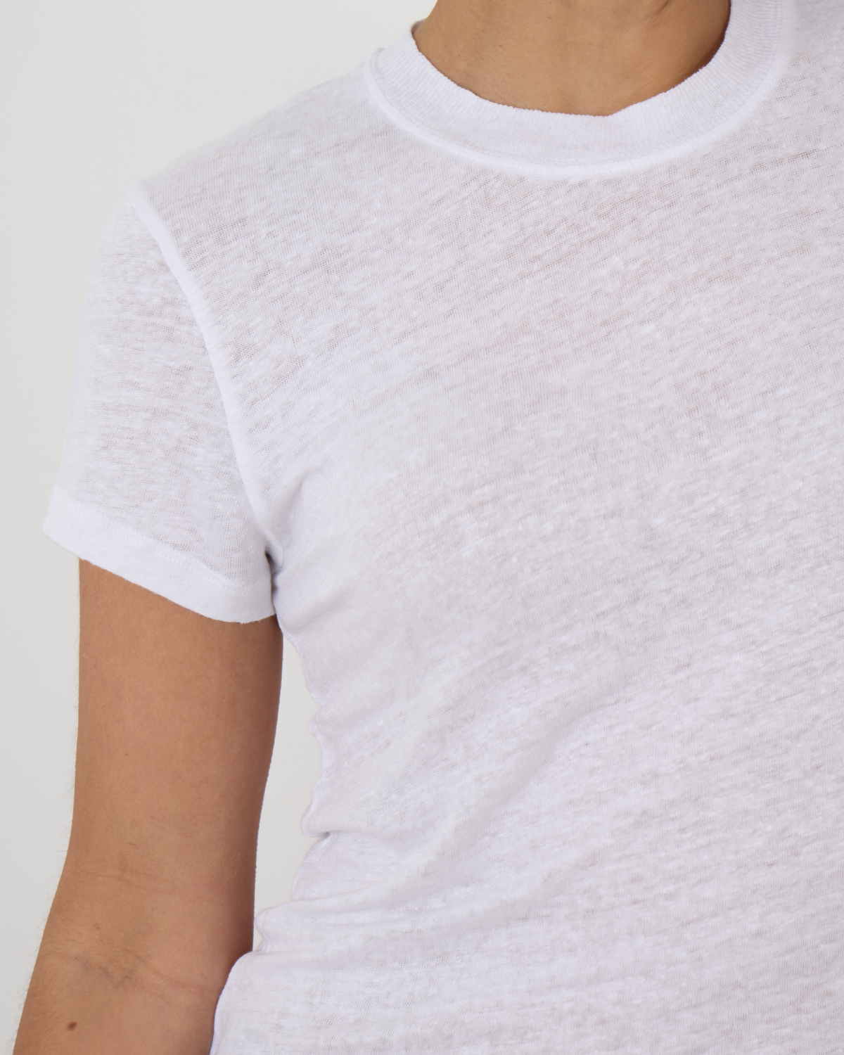 Het Third T-shirt van Iro is een mooie basic om eindeloos te combineren. Het slanke T-shirt komt in het wit en is gemaakt van 100% linnen.
