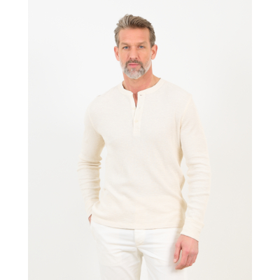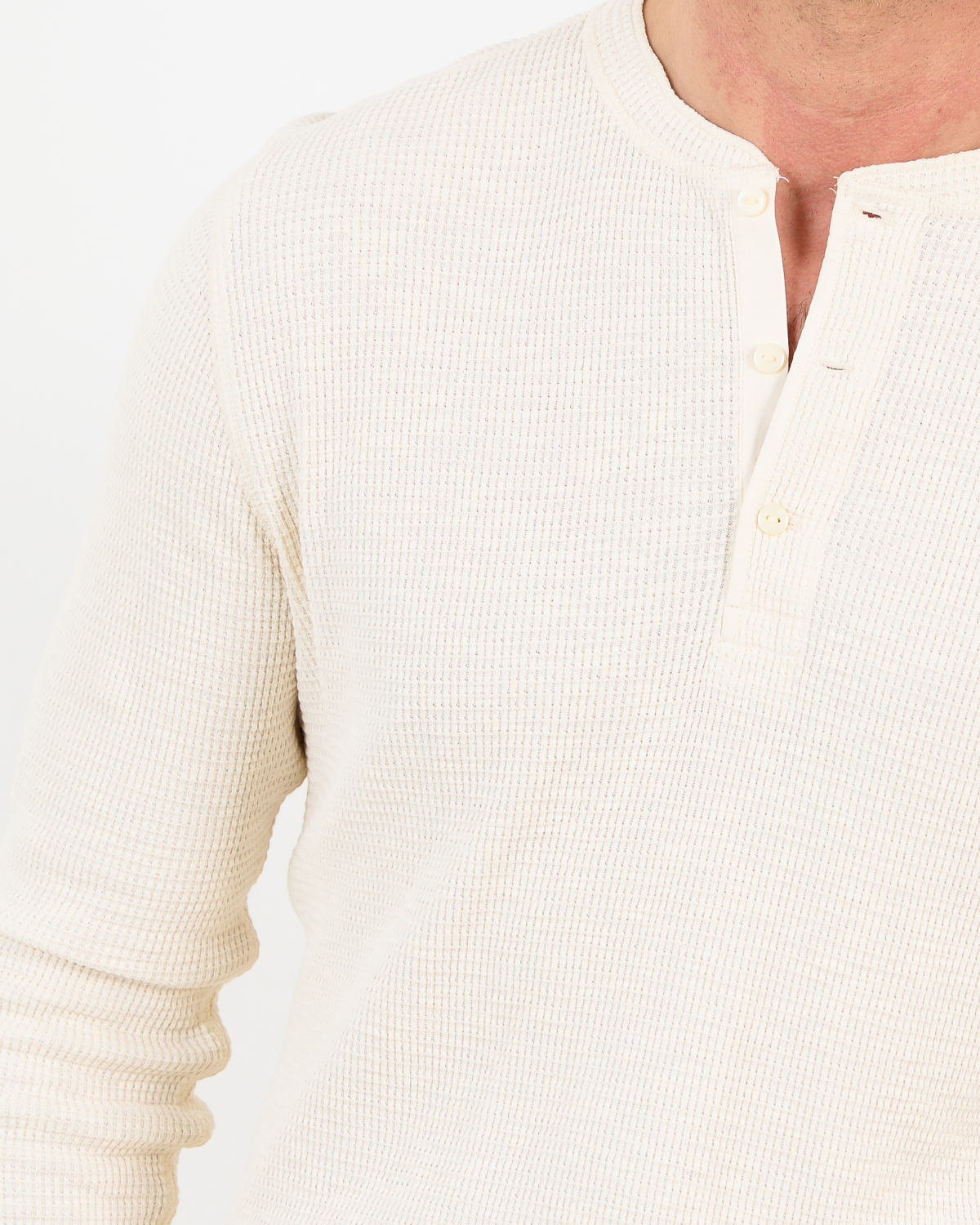 This white long sleeve shirt delivers refined comfort with its textured waffle-knit construction. Crafted from 100% cotton, the fabric feels soft against your skin while maintaining structure throughout the day. The henley-style button placket adds a relaxed touch to the classic silhouette, while the regular fit ensures comfortable movement. From RRL, this men's clothing essential brings understated quality to your wardrobe.