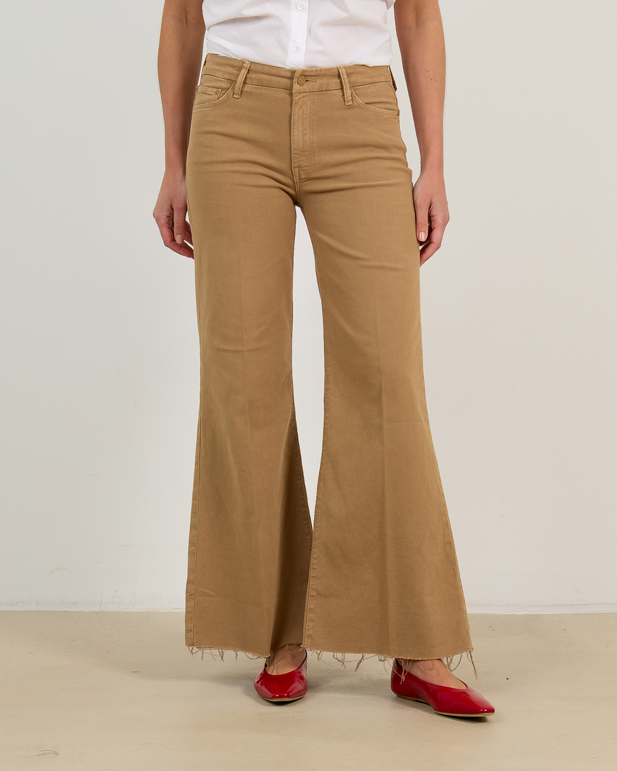 Style these statement denim pieces with a crisp white blouse for polished elegance, or pair with a fitted knit top to balance the relaxed silhouette. The versatile brown shade complements earth tones beautifully and pairs perfectly with cream blazers or camel coats. Complete the look with pointed flats for daytime sophistication or heeled boots for evening impact. This Mother design elevates your women's clothing collection with its premium quality and distinctive wide leg shape.