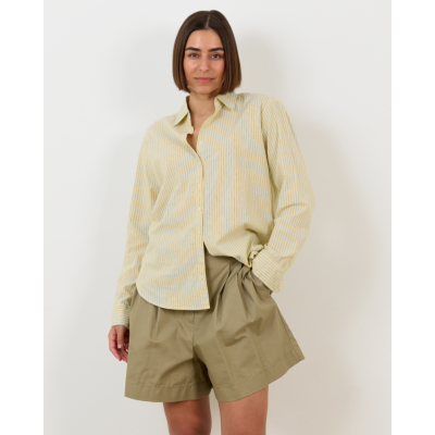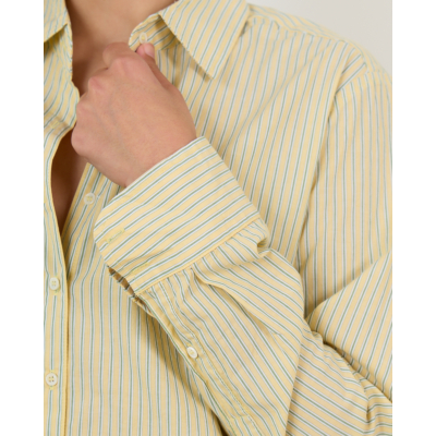 This elegant striped blouse in radiant yellow brings fresh sophistication to your women's clothing collection. The fine vertical stripes create a refined pattern that flatters beautifully. Crafted from 100% cotton, this Xírena piece features a classic collar, full button closure, and long sleeves with button cuffs. The relaxed-fit silhouette ensures comfortable wear while maintaining an polished appearance that elevates any ensemble.
