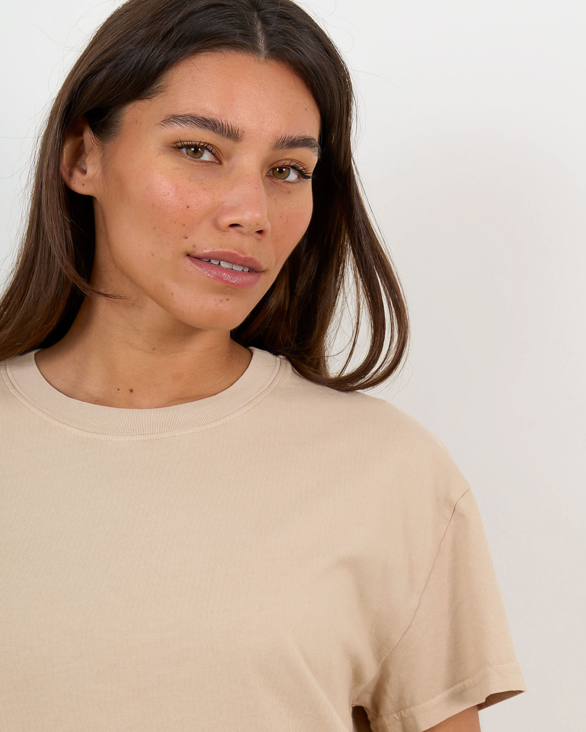 This elegant beige t-shirt from Xírena brings refined simplicity to your women's clothing collection. Crafted from 100% cotton, this premium piece features short sleeves and a classic crew neckline. The relaxed fit creates a comfortable silhouette that flatters naturally. The soft beige tone adds versatility to any wardrobe.